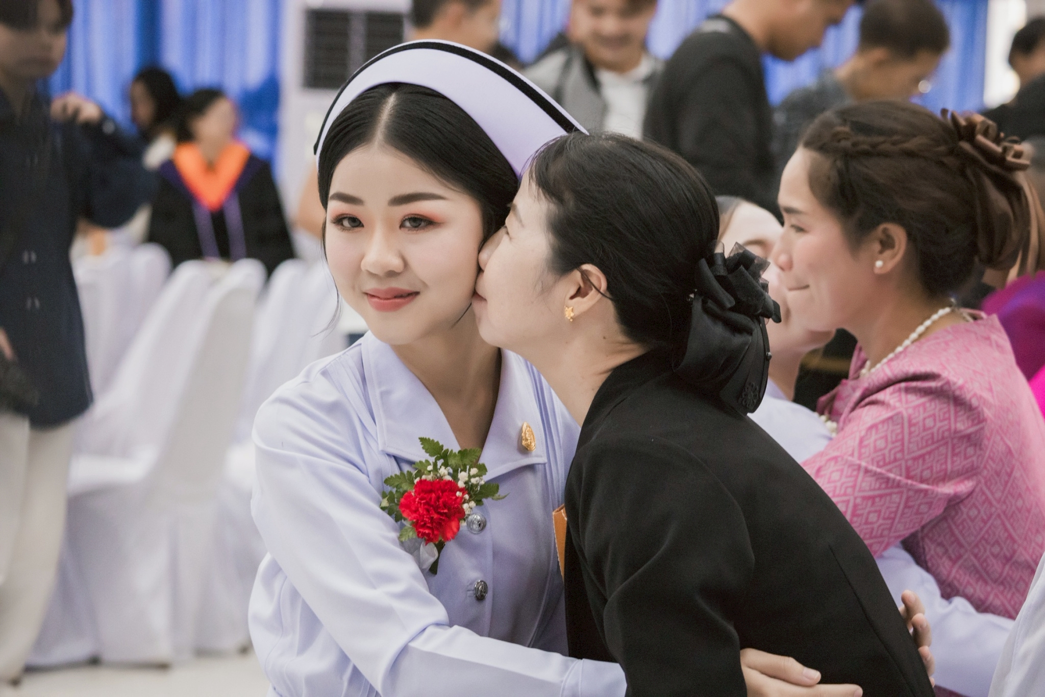 Mr. Khammay Muendouang, Deputy Chief of the Student Affairs Department Mr. Damlong Singhalath, academic staff Ms. Angkhana lasaphonh, Academic Staff-International Coordinator และโรงเรียนสาธารณสุขคำม่วน โดยมี Dr. Phengkhan BOUNVARDSANAR Mrs. Saengaloun SOUVONG Mrs. Davone SAENGPHACHAN Dr. sathaphone SOUVANNALASY สาธารณรัฐประชาธิปไตยประชาชนลาว เป็นเกียรติในพิธีสำเร็จการศึกษาของนักศึกษา และร่วมพูดคุยแลกเปลี่ยนกับคณะผู้บริหารของวิทยาลัยฯ รวมถึงกีฬาไทย-ลาวสัมพันธ์ ตลอดจนผู้ปกครอง แขกผู้มีเกียรติ และนักศึกษา เข้าร่วม ณ หอประชุมศรีโคตรบูรณ์ วิทยาลัยพยาบาลบรมราชชนนีนครพนม มหาวิทยาลัยนครพนม