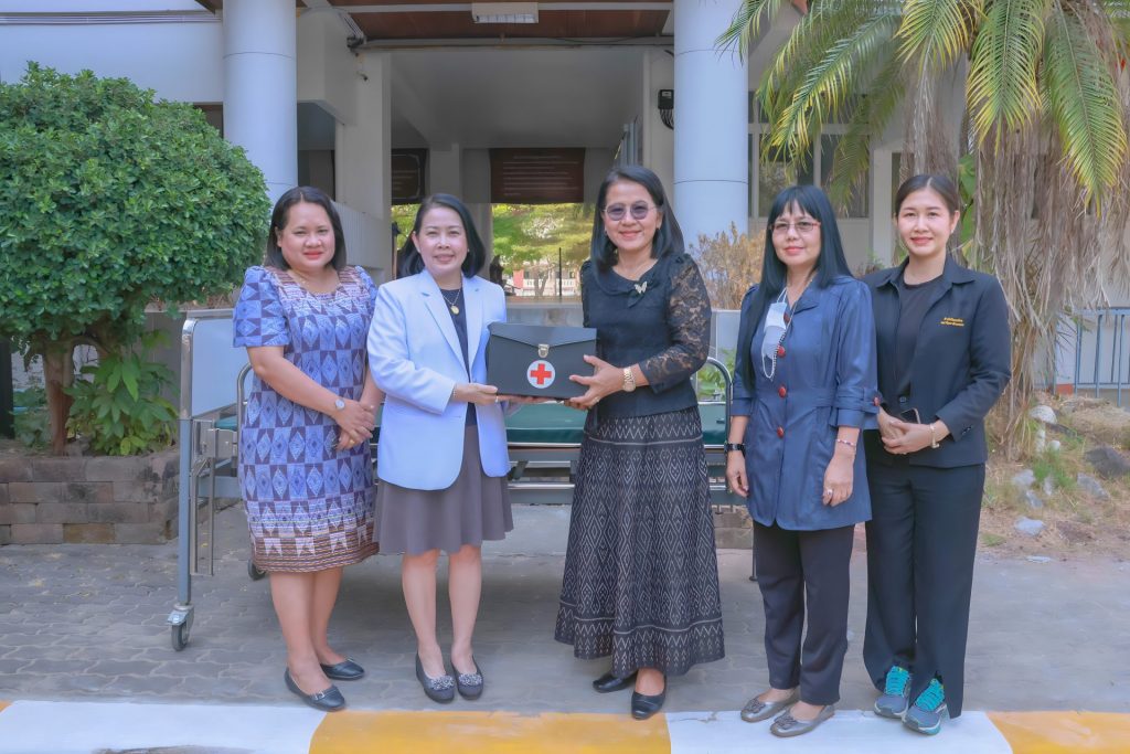 วันที่ 24 กุมภาพันธ์ 2569 ดร.สุปราณี สิทธิกานต์ คณบดีวิทยาลัยพยาบาลบรมราชชนนีนครพนม มหาวิทยาลัยนครพนม ได้มอบอุปกรณ์และเวชภัณฑ์ทางการแพทย์เบื้องต้น เพื่อสนับสนุนการจัดตั้ง “ห้องพยาบาล” ให้แก่ นางรุ่งเรือง สงเคราะห์ ผู้อำนวยการสำนักวิทยบริการ มหาวิทยาลัยนครพนม โดยมีคณะผู้บริหาร คณาจารย์ และบุคลากรร่วมรับมอบ โดยอุปกรณ์ที่มอบให้ประกอบด้วยเวชภัณฑ์ทางการแพทย์เบื้องต้น ของใช้จำเป็น และเตียงผู้ป่วย เพื่อใช้ในการดูแลสุขภาพเบื้องต้นของนักศึกษาและบุคลากรที่เข้ามาใช้บริการ ณ สำนักวิทยบริการ มหาวิทยาลัยนครพนม ให้สามารถเข้าถึงบริการพยาบาลได้อย่างสะดวกและทันท่วงที