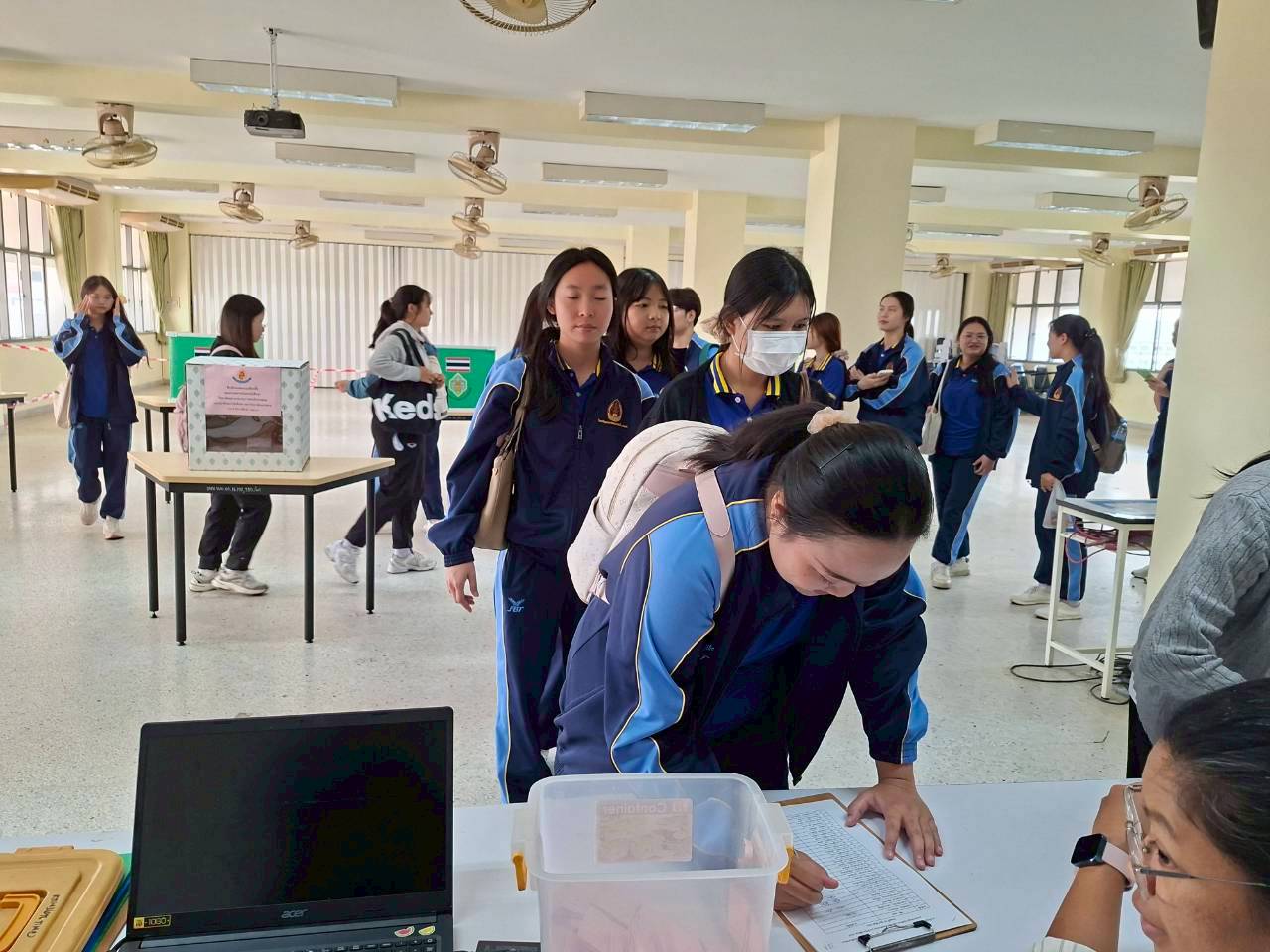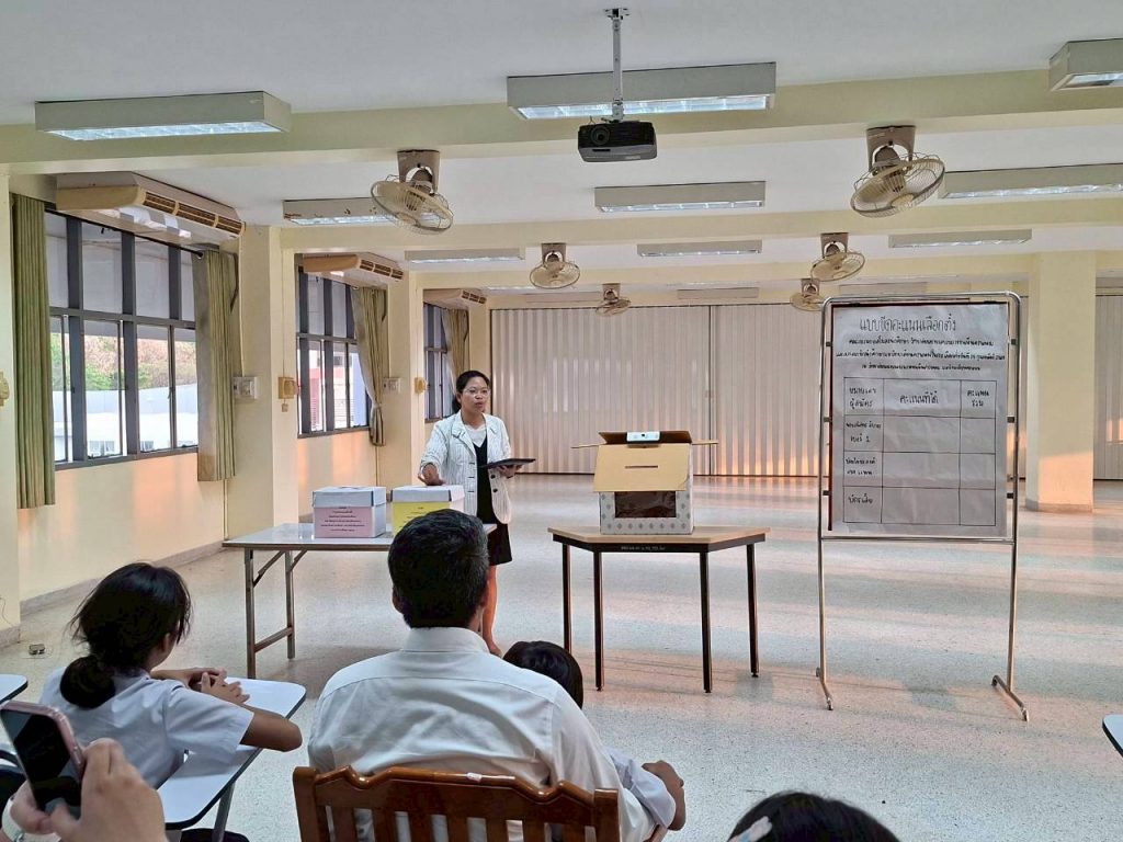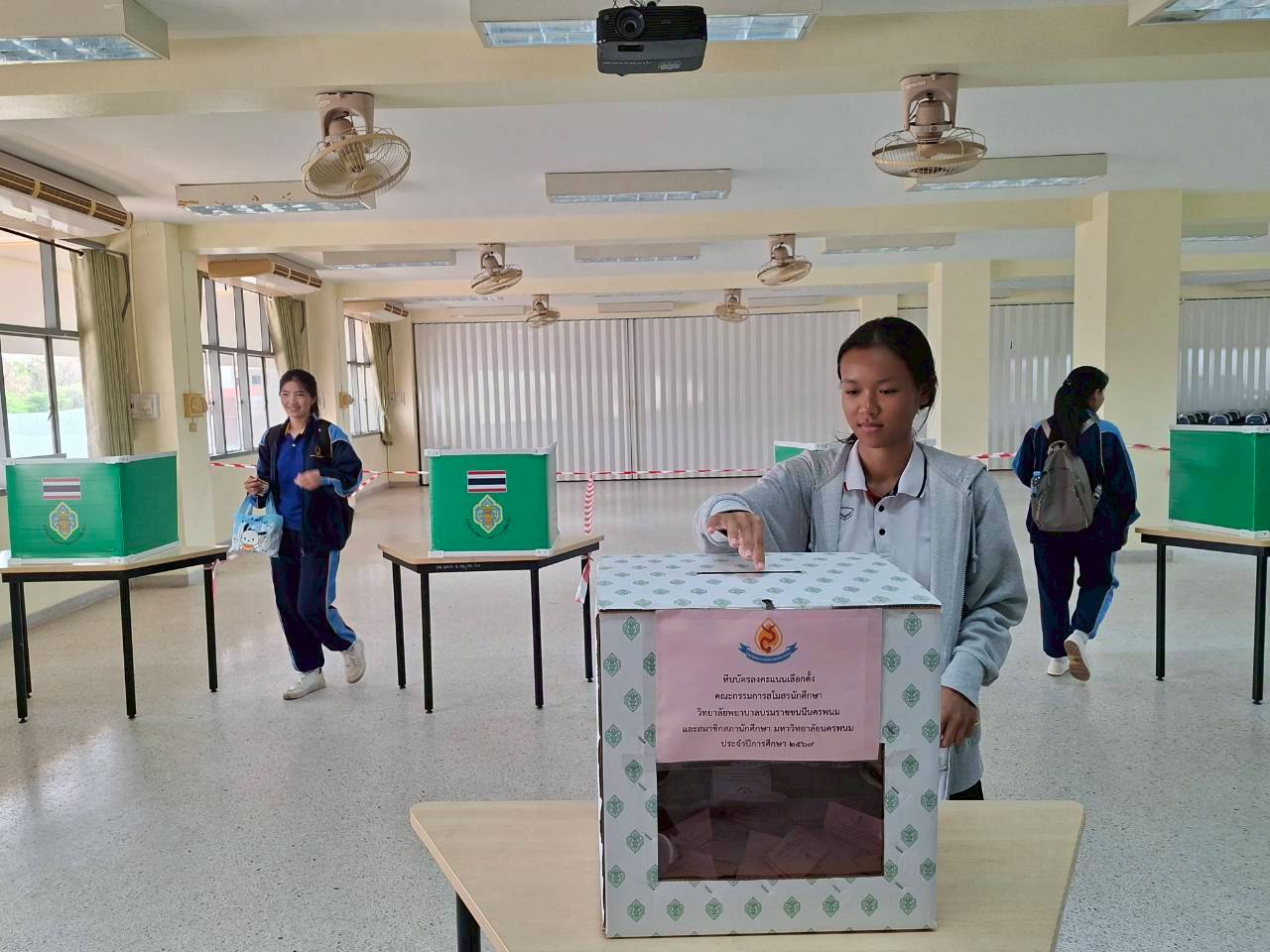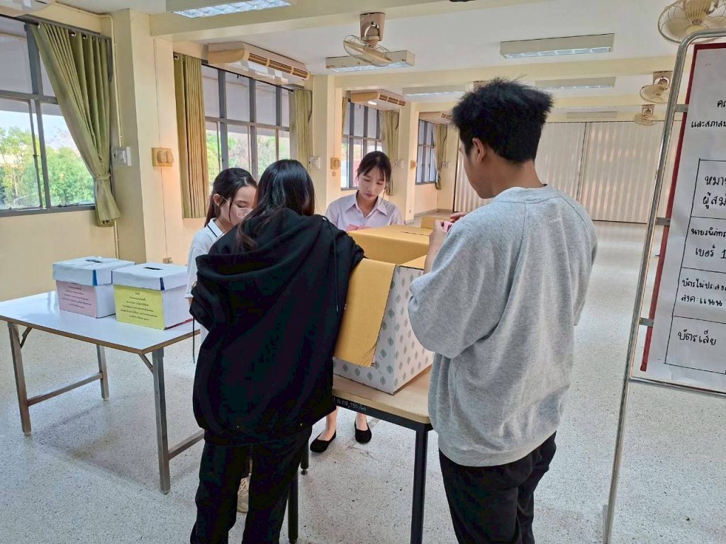 วันที่ 25 กุมภาพันธ์ 2569 ดร.สุปราณี สิทธิกานต์ คณบดีวิทยาลัยพยาบาลบรมราชชนนีนครพนม มหาวิทยาลัยนครพนม มอบหมายให้ ผศ.ดร.สุรชัย เฉนียง รองคณบดีฝ่ายพัฒนานักศึกษาและวิเทศสัมพันธ์ พร้อมด้วย คณาจารย์ และบุคลากร และคณะกรรมการสโมสรนักศึกษา ปีการศึกษา 2568 จัดกิจกรรมการเลือกตั้งคณะกรรมการสโมสรนักศึกษา วิทยาลัยพยาบาลบรมราชชนนีนครพนม และสมาชิกสภานักศึกษา มหาวิทยาลัยนครพนม ประจำปีการศึกษา 2569 โดยมี นายรพิภัทร สำราญและทีมจากพรรคฟ้าทองพัฒนา เป็นผู้สมัครเข้ารับการเลือกตั้งฯ ผลการเลือกตั้งฯ มีนักศึกษามาใช้สิทธิ์ทั้งสิ้นจำนวน 376 จากนักศึกษาผู้มีสิทธิ์เลือกตั้งทั้งหมด 503 คน คิดเป็นร้อยละ 74.75