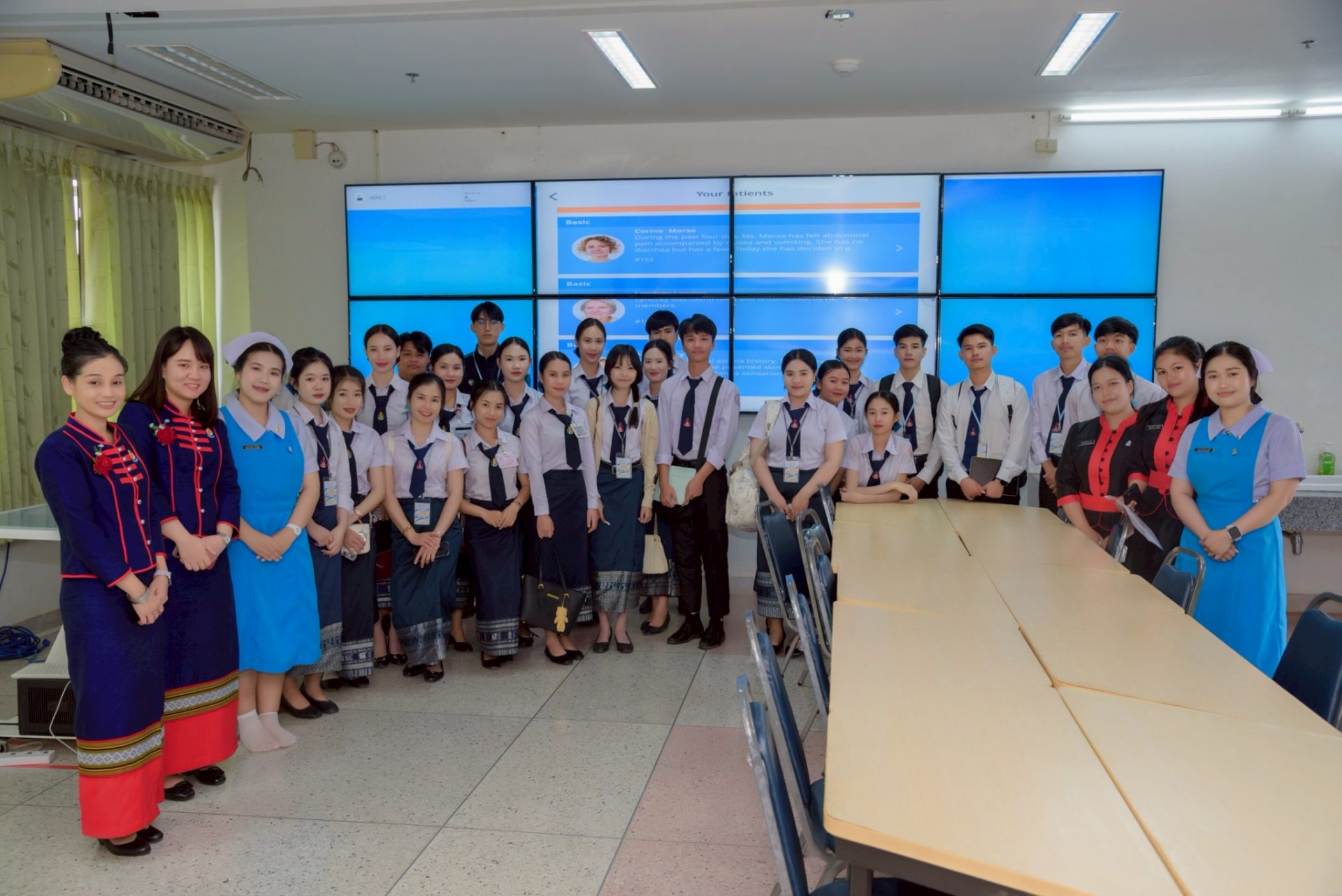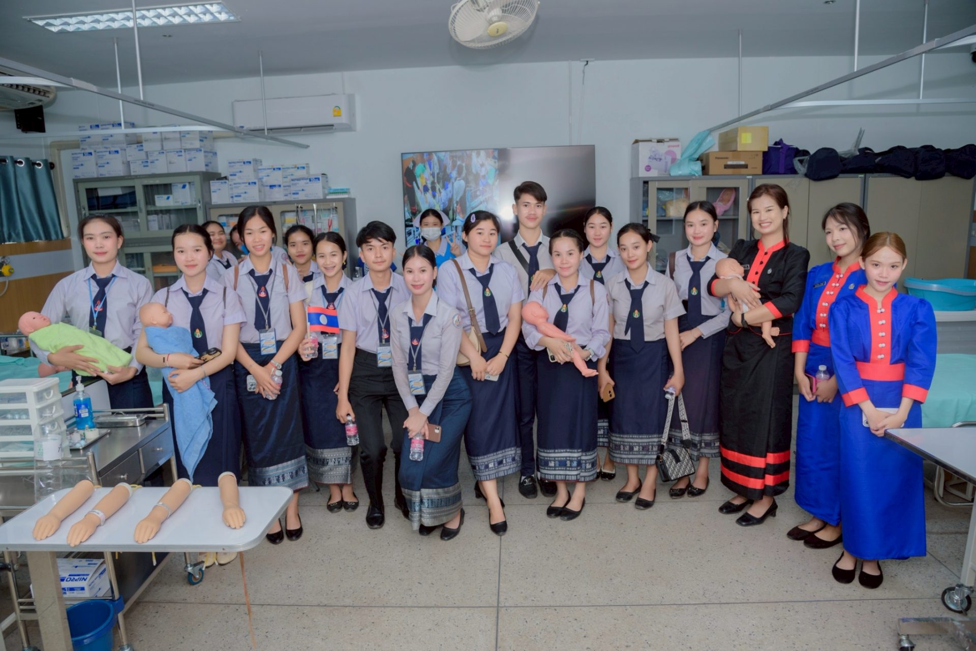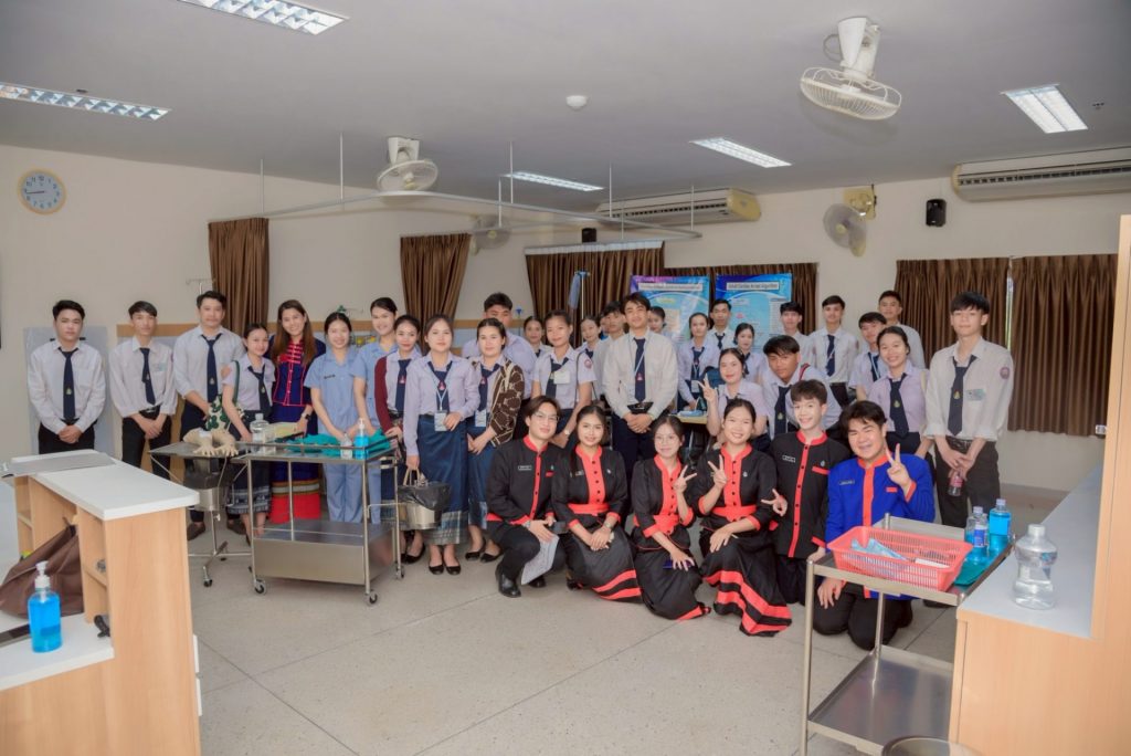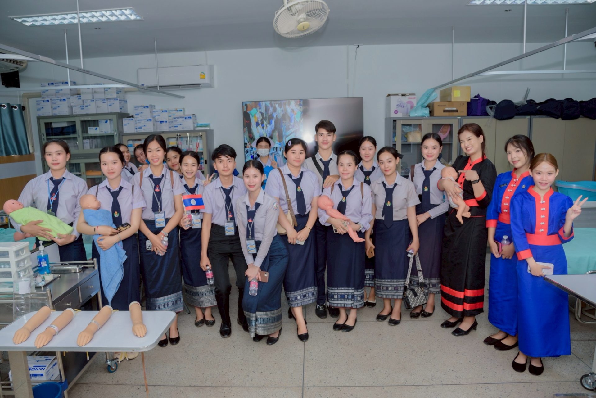 ระหว่างวันที่ 26-27 มีนาคม 2569 ดร.สุปราณี สิทธิกานต์ คณบดีวิทยาลัยพยาบาลบรมราชชนนีนครพนม มหาวิทยาลัยนครพนม มอบหมายให้ฝ่ายพัฒนานักศึกษาและวิเทศสัมพันธ์ นำโดย ผู้ช่วยศาสตราจารย์ ดร.สุรชัย เฉนียง รองคณบดีฝ่ายพัฒนานักศึกษาและวิเทศสัมพันธ์ ร่วมกับสโมสรนักศึกษาวิทยาลัยพยาบาลบรมราชชนนีนครพนม ให้การต้อนรับและจัดกิจกรรมแลกเปลี่ยนเรียนรู้แก่คณะนักศึกษาจากโรงเรียนสาธารณสุขคำม่วน และวิทยาลัยวิทยาศาสตร์สุขภาพสะหวันนะเขต สาธารณรัฐประชาธิปไตยประชาชนลาว โดยกิจกรรมประกอบด้วยการเยี่ยมชมห้องปฏิบัติการทางการพยาบาลทั้ง 5 กลุ่มวิชา ซึ่งเป็นแหล่งเรียนรู้ที่ทันสมัยและสอดคล้องกับการจัดการเรียนการสอนในศตวรรษที่ 21 ได้แก่ ห้องปฏิบัติการพยาบาลและ Smart Ward กลุ่มวิชาการพยาบาลผู้ใหญ่และผู้สูงอายุ ห้องปฏิบัติการพยาบาลสูติศาสตร์และการผดุงครรภ์ กลุ่มวิชาการพยาบาลมารดาทารกและการผดุงครรภ์ ห้องปฏิบัติการพยาบาลสุขภาพจิตและจิตเวชศาสตร์ ห้องจำลองสถานการณ์พยาบาลเด็ก (Sim Baby) และห้องจำลองสถานการณ์ฉุกเฉิน (Sim ER) ซึ่งช่วยเสริมสร้างทักษะการปฏิบัติและประสบการณ์เสมือนจริงให้แก่นักศึกษา โดยมีคณะผู้บริหาร และคณาจารย์ ทั้ง 5 กลุ่มวิชาให้การต้อนรับและให้ควมรู้แก่นักศึกษา ณ ห้องปฏิบัติการทางการพยาบาล วิทยาลัยพยาบาลบรมราชชนนีนครพนม มหาวิทยาลัยนครพนม
