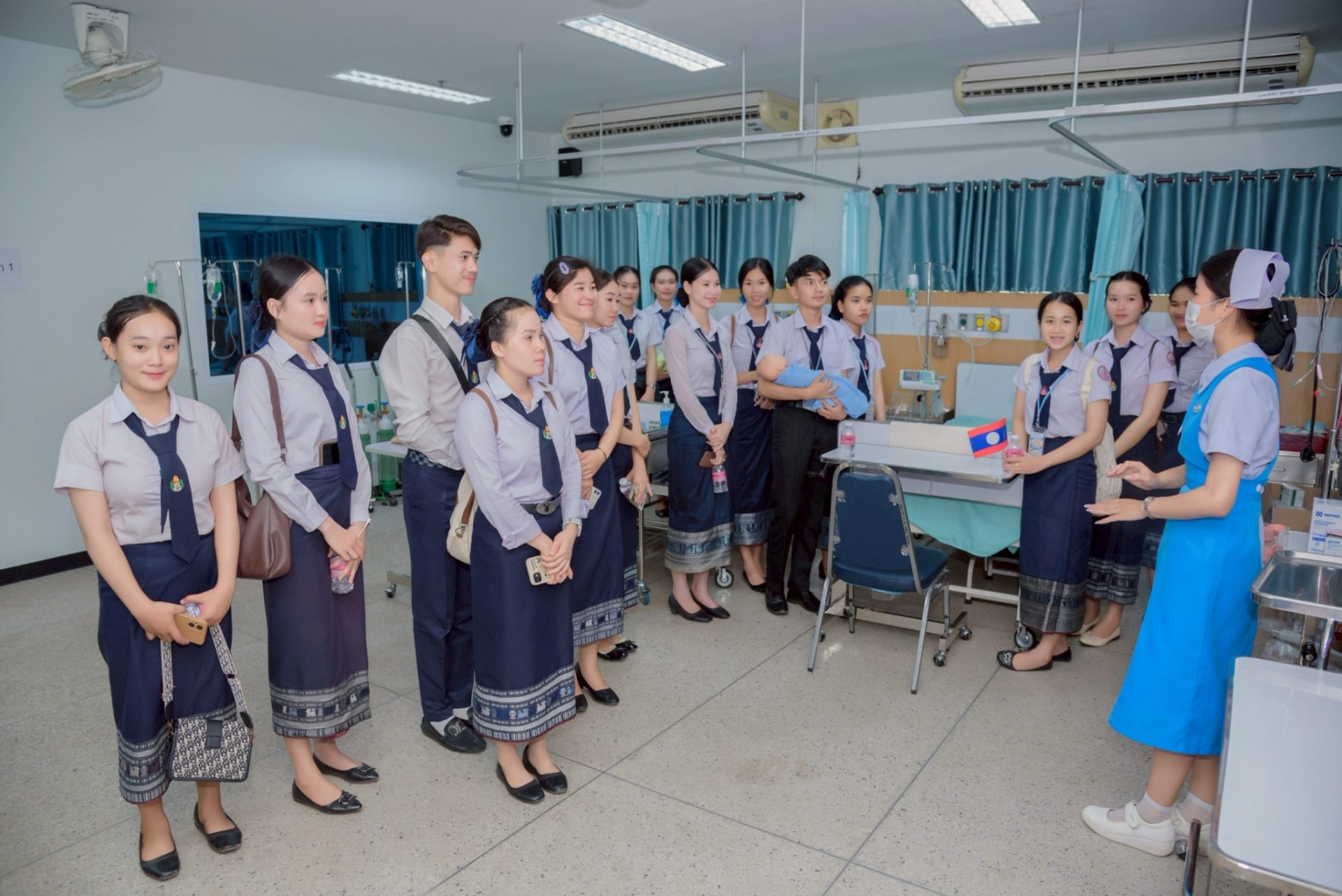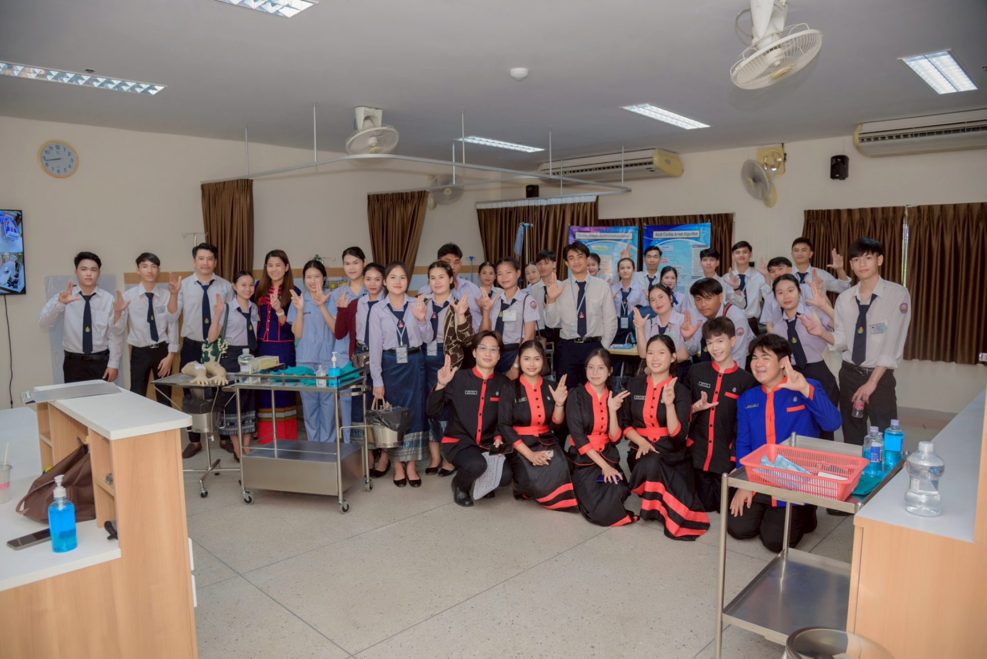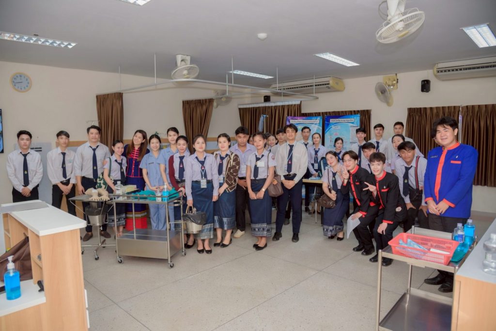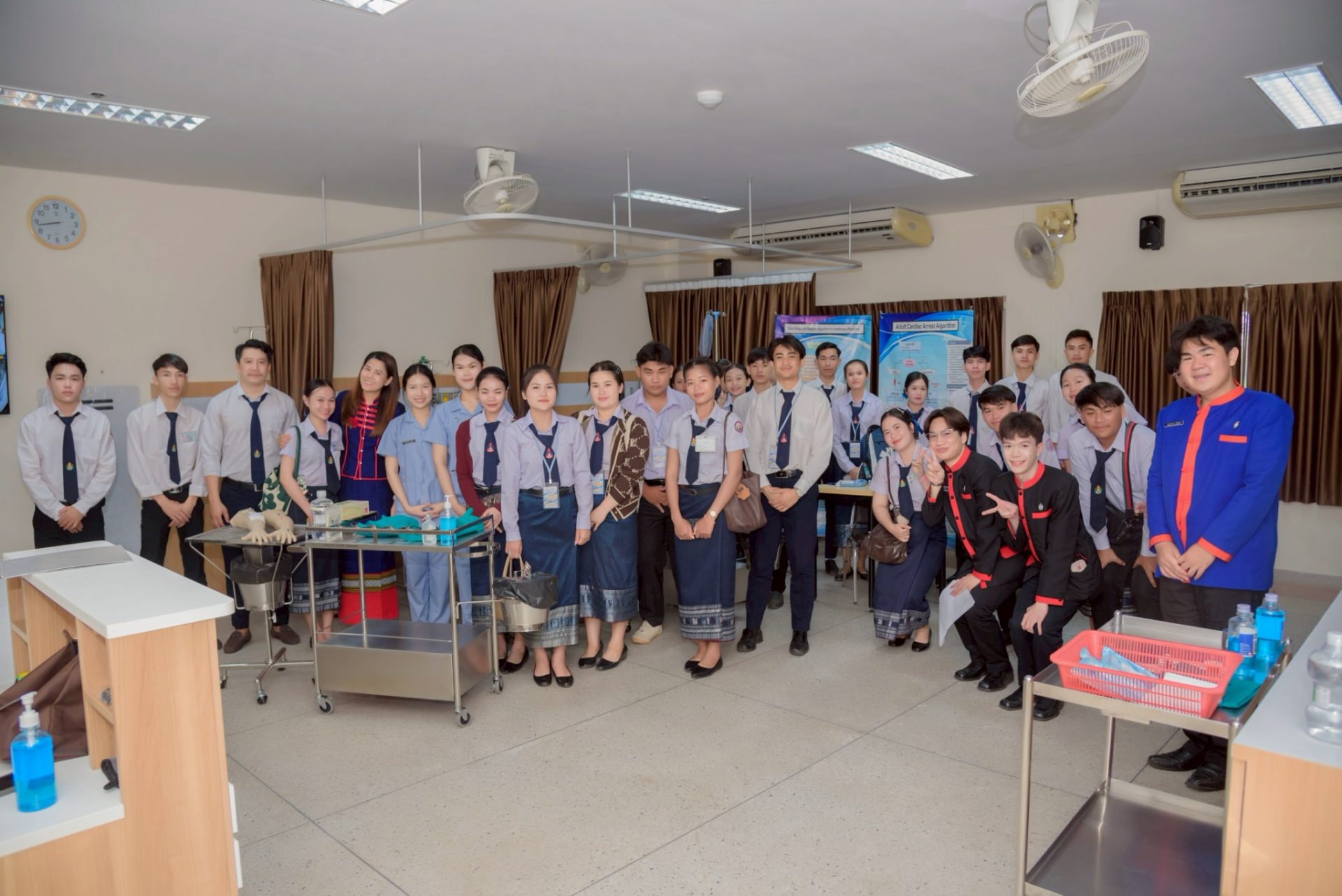 ระหว่างวันที่ 26-27 มีนาคม 2569 ดร.สุปราณี สิทธิกานต์ คณบดีวิทยาลัยพยาบาลบรมราชชนนีนครพนม มหาวิทยาลัยนครพนม มอบหมายให้ฝ่ายพัฒนานักศึกษาและวิเทศสัมพันธ์ นำโดย ผู้ช่วยศาสตราจารย์ ดร.สุรชัย เฉนียง รองคณบดีฝ่ายพัฒนานักศึกษาและวิเทศสัมพันธ์ ร่วมกับสโมสรนักศึกษาวิทยาลัยพยาบาลบรมราชชนนีนครพนม ให้การต้อนรับและจัดกิจกรรมแลกเปลี่ยนเรียนรู้แก่คณะนักศึกษาจากโรงเรียนสาธารณสุขคำม่วน และวิทยาลัยวิทยาศาสตร์สุขภาพสะหวันนะเขต สาธารณรัฐประชาธิปไตยประชาชนลาว โดยกิจกรรมประกอบด้วยการเยี่ยมชมห้องปฏิบัติการทางการพยาบาลทั้ง 5 กลุ่มวิชา ซึ่งเป็นแหล่งเรียนรู้ที่ทันสมัยและสอดคล้องกับการจัดการเรียนการสอนในศตวรรษที่ 21 ได้แก่ ห้องปฏิบัติการพยาบาลและ Smart Ward กลุ่มวิชาการพยาบาลผู้ใหญ่และผู้สูงอายุ ห้องปฏิบัติการพยาบาลสูติศาสตร์และการผดุงครรภ์ กลุ่มวิชาการพยาบาลมารดาทารกและการผดุงครรภ์ ห้องปฏิบัติการพยาบาลสุขภาพจิตและจิตเวชศาสตร์ ห้องจำลองสถานการณ์พยาบาลเด็ก (Sim Baby) และห้องจำลองสถานการณ์ฉุกเฉิน (Sim ER) ซึ่งช่วยเสริมสร้างทักษะการปฏิบัติและประสบการณ์เสมือนจริงให้แก่นักศึกษา โดยมีคณะผู้บริหาร และคณาจารย์ ทั้ง 5 กลุ่มวิชาให้การต้อนรับและให้ควมรู้แก่นักศึกษา ณ ห้องปฏิบัติการทางการพยาบาล วิทยาลัยพยาบาลบรมราชชนนีนครพนม มหาวิทยาลัยนครพนม