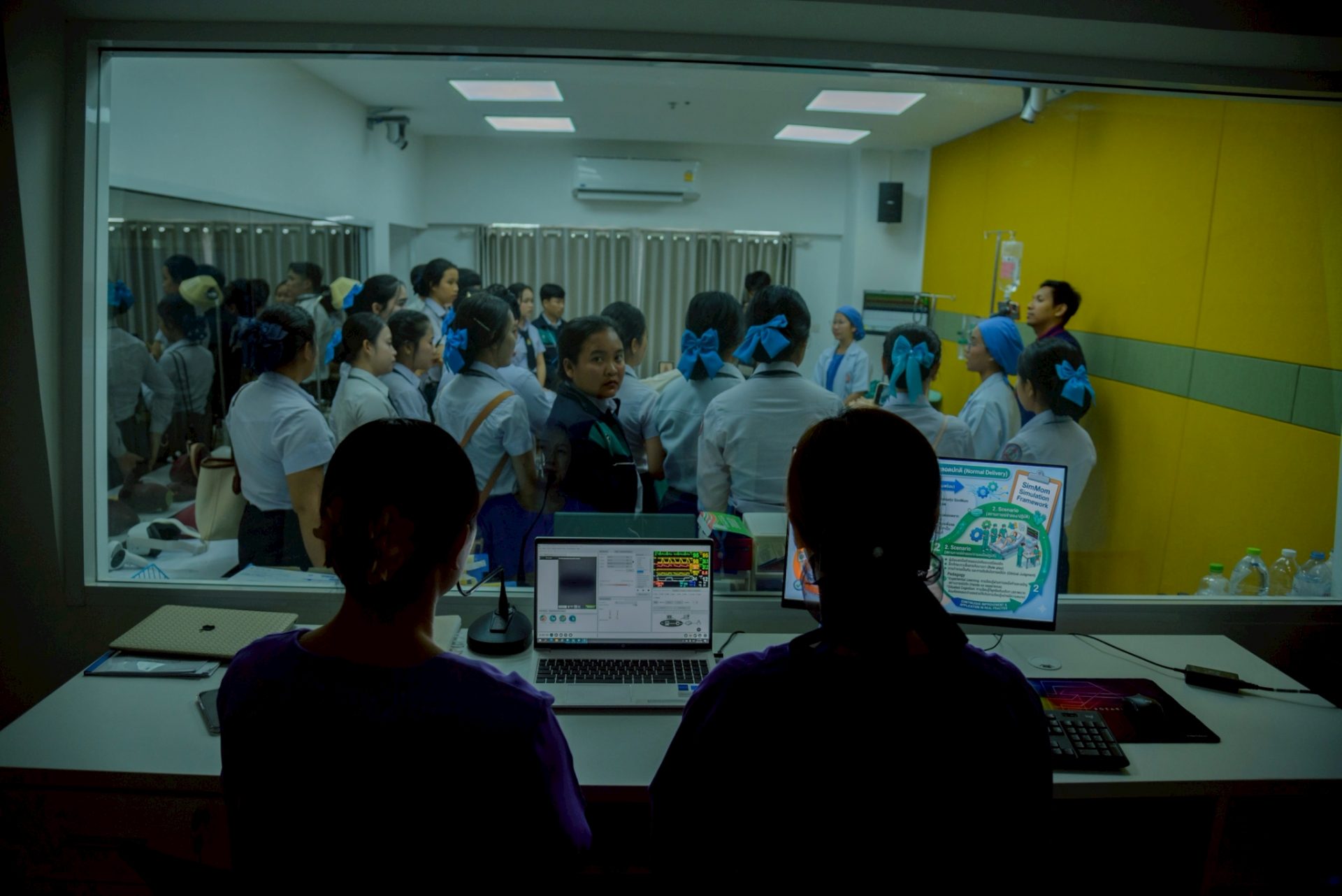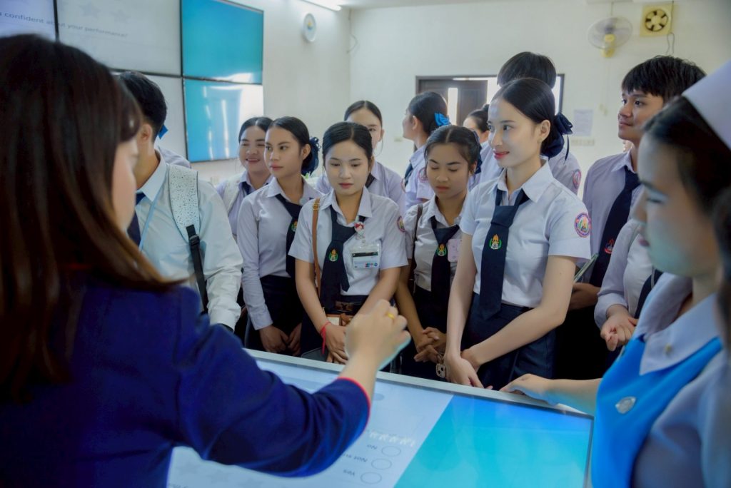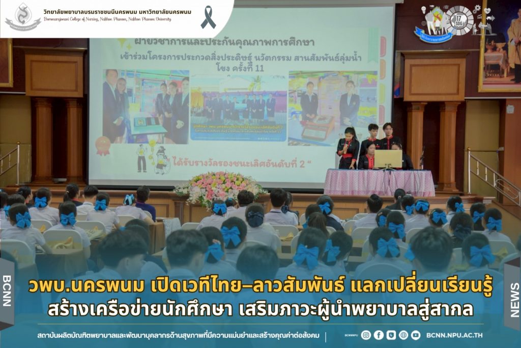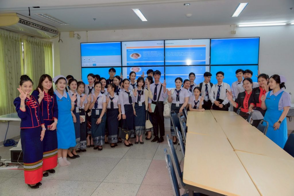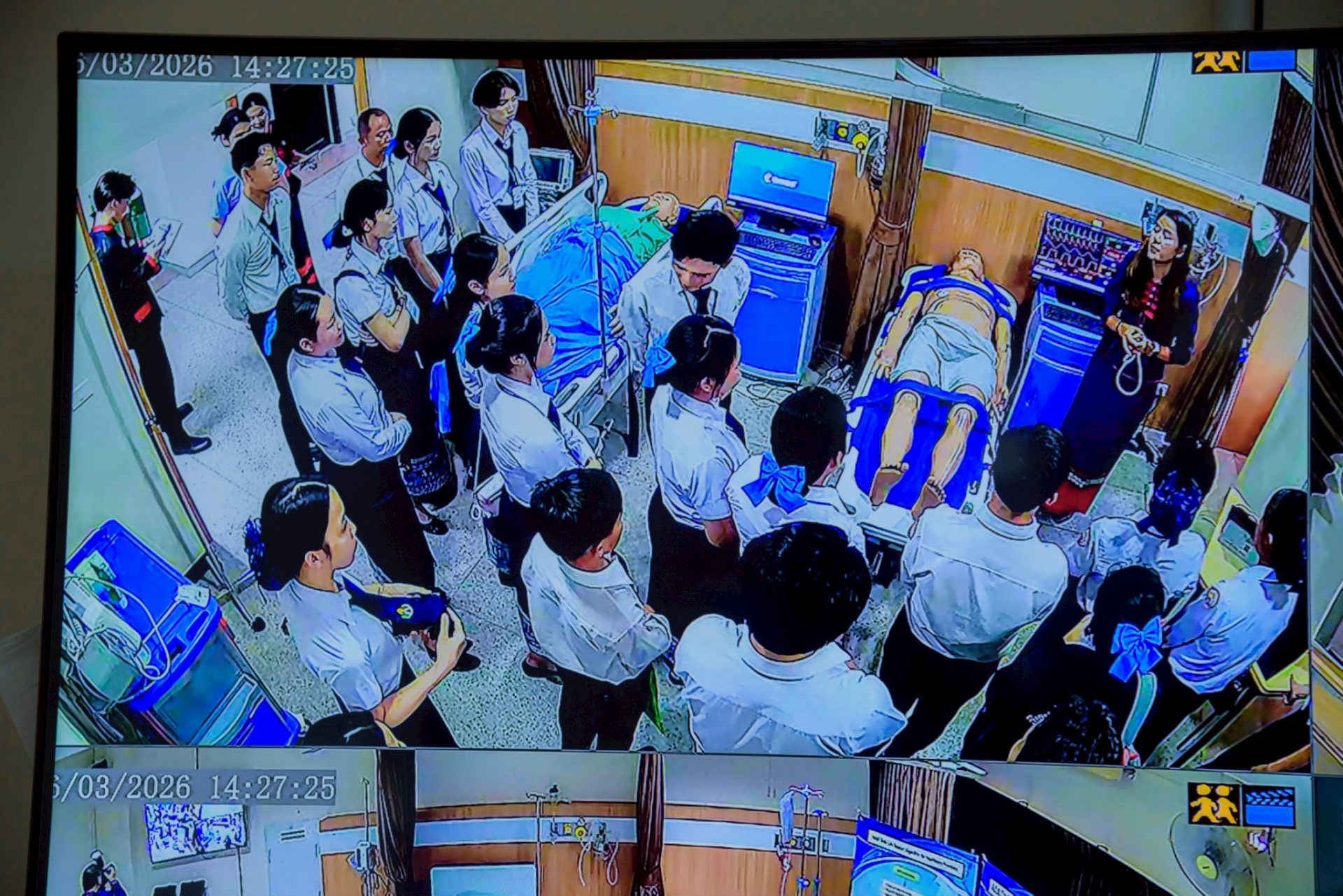 ระหว่างวันที่ 26-27 มีนาคม 2569 ดร.สุปราณี สิทธิกานต์ คณบดีวิทยาลัยพยาบาลบรมราชชนนีนครพนม มหาวิทยาลัยนครพนม มอบหมายให้ฝ่ายพัฒนานักศึกษาและวิเทศสัมพันธ์ นำโดย ผู้ช่วยศาสตราจารย์ ดร.สุรชัย เฉนียง รองคณบดีฝ่ายพัฒนานักศึกษาและวิเทศสัมพันธ์ ร่วมกับสโมสรนักศึกษาวิทยาลัยพยาบาลบรมราชชนนีนครพนม ให้การต้อนรับและจัดกิจกรรมแลกเปลี่ยนเรียนรู้แก่คณะนักศึกษาจากโรงเรียนสาธารณสุขคำม่วน และวิทยาลัยวิทยาศาสตร์สุขภาพสะหวันนะเขต สาธารณรัฐประชาธิปไตยประชาชนลาว โดยกิจกรรมประกอบด้วยการเยี่ยมชมห้องปฏิบัติการทางการพยาบาลทั้ง 5 กลุ่มวิชา ซึ่งเป็นแหล่งเรียนรู้ที่ทันสมัยและสอดคล้องกับการจัดการเรียนการสอนในศตวรรษที่ 21 ได้แก่ ห้องปฏิบัติการพยาบาลและ Smart Ward กลุ่มวิชาการพยาบาลผู้ใหญ่และผู้สูงอายุ ห้องปฏิบัติการพยาบาลสูติศาสตร์และการผดุงครรภ์ กลุ่มวิชาการพยาบาลมารดาทารกและการผดุงครรภ์ ห้องปฏิบัติการพยาบาลสุขภาพจิตและจิตเวชศาสตร์ ห้องจำลองสถานการณ์พยาบาลเด็ก (Sim Baby) และห้องจำลองสถานการณ์ฉุกเฉิน (Sim ER) ซึ่งช่วยเสริมสร้างทักษะการปฏิบัติและประสบการณ์เสมือนจริงให้แก่นักศึกษา โดยมีคณะผู้บริหาร และคณาจารย์ ทั้ง 5 กลุ่มวิชาให้การต้อนรับและให้ควมรู้แก่นักศึกษา ณ ห้องปฏิบัติการทางการพยาบาล วิทยาลัยพยาบาลบรมราชชนนีนครพนม มหาวิทยาลัยนครพนม