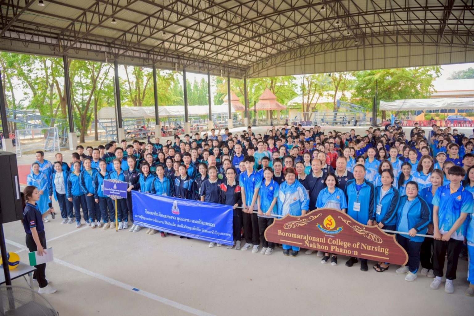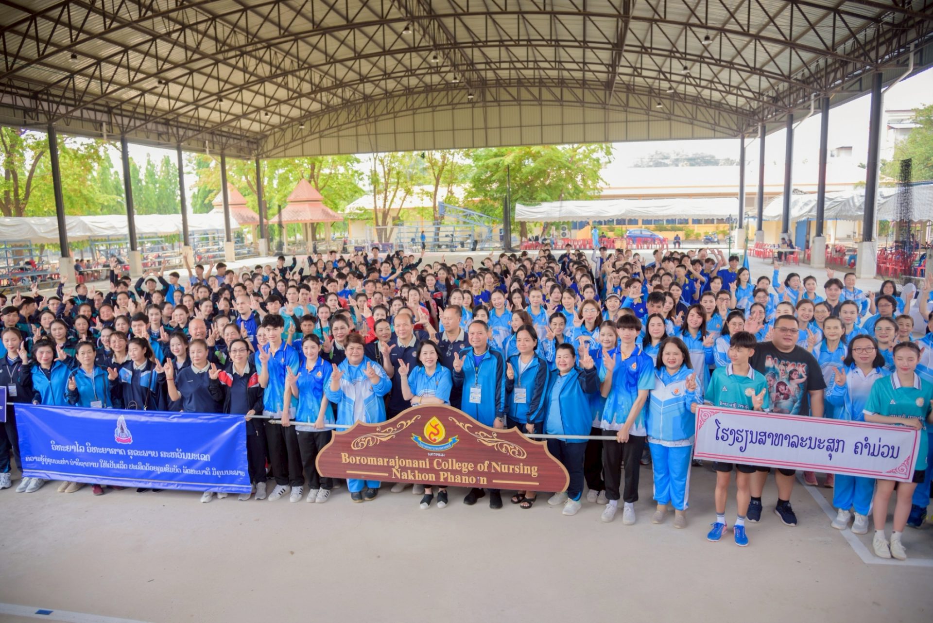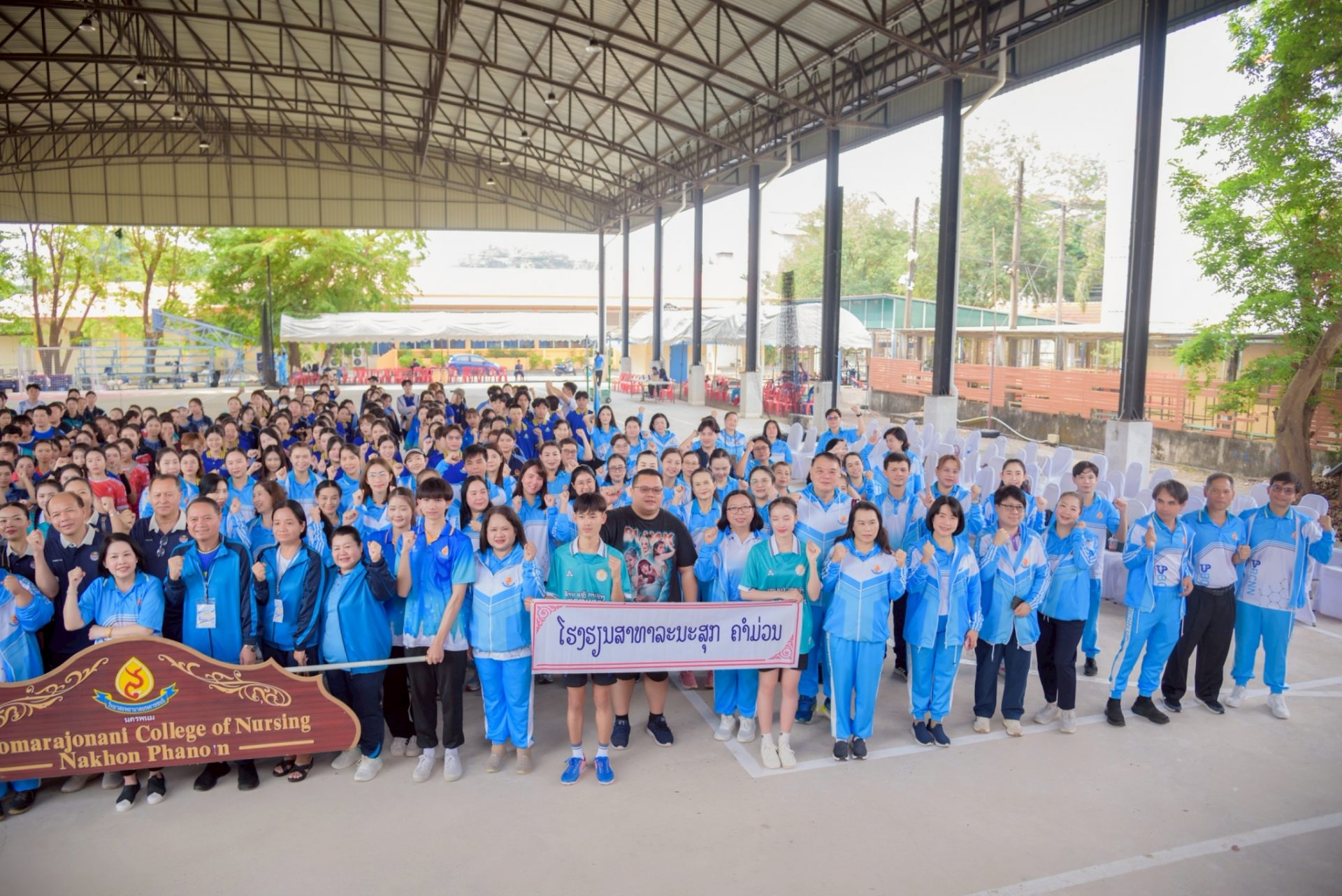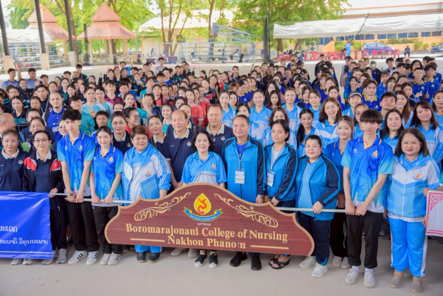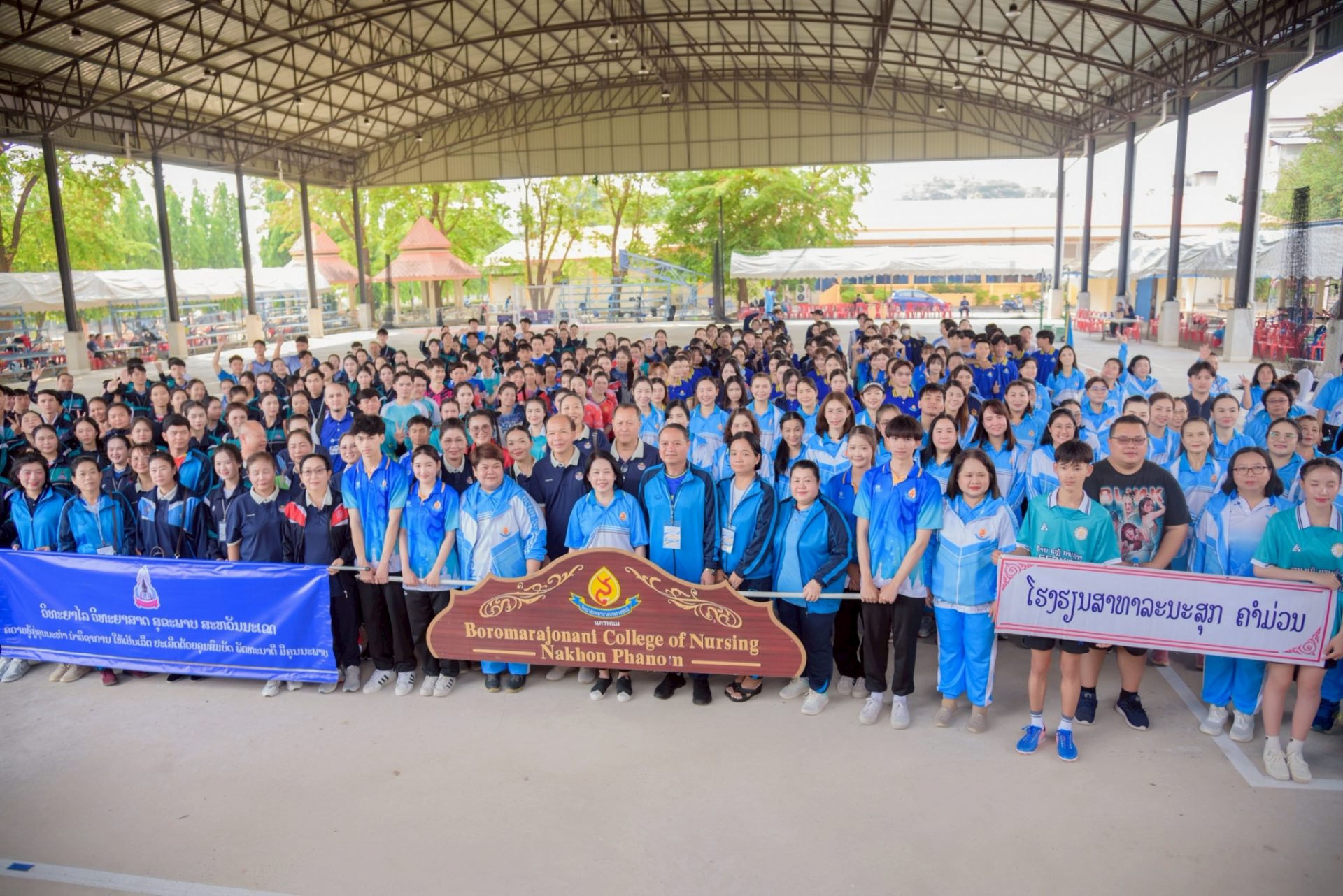 วันที่ 27 มีนาคม 2569 ดร.สุปราณี สิทธิกานต์ คณบดีวิทยาลัยพยาบาลบรมราชชนนีนครพนม เป็นประธานกล่าวเปิดงานและกล่าวต้อนรับผู้เข้าร่วมกิจกรรม โดยมีผู้ช่วยศาสตราจารย์ ดร.สุรชัย เฉนียง รองคณบดีฝ่ายพัฒนานักศึกษาและวิเทศสัมพันธ์ กล่าวรายงานวัตถุประสงค์ของโครงการ โดยมุ่งใช้ “กีฬา” เป็นเครื่องมือในการเสริมสร้างภาวะผู้นำ การทำงานเป็นทีม และความสัมพันธ์ระหว่างประเทศ กิจกรรมดังกล่าวจัดขึ้นภายใต้ความร่วมมือระหว่างวิทยาลัยพยาบาลบรมราชชนนีนครพนม มหาวิทยาลัยนครพนม ร่วมกับวิทยาลัยวิทยาศาสตร์สุขภาพสะหวันนะเขต และโรงเรียนสาธารณสุขคำม่วน สาธารณรัฐประชาธิปไตยประชาชนลาว โดยได้รับเกียรติจาก ดร.สุคันทอน สิงพวงเพ็ด และ ดร.เพ็งคาน บุญวาสนา พร้อมด้วยคณะผู้บริหาร คณาจารย์ และนักศึกษาจากทั้งสองประเทศเข้าร่วม กว่า 400 คน ท่ามกลางบรรยากาศที่เต็มไปด้วยความสนุกสนานและความสามัคคี ณ สนามกีฬา วิทยาลัยพยาบาลบรมราชชนนีนครพนม มหาวิทยาลัยนครพนม