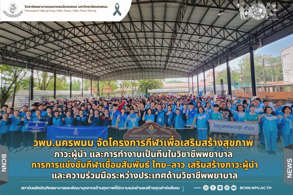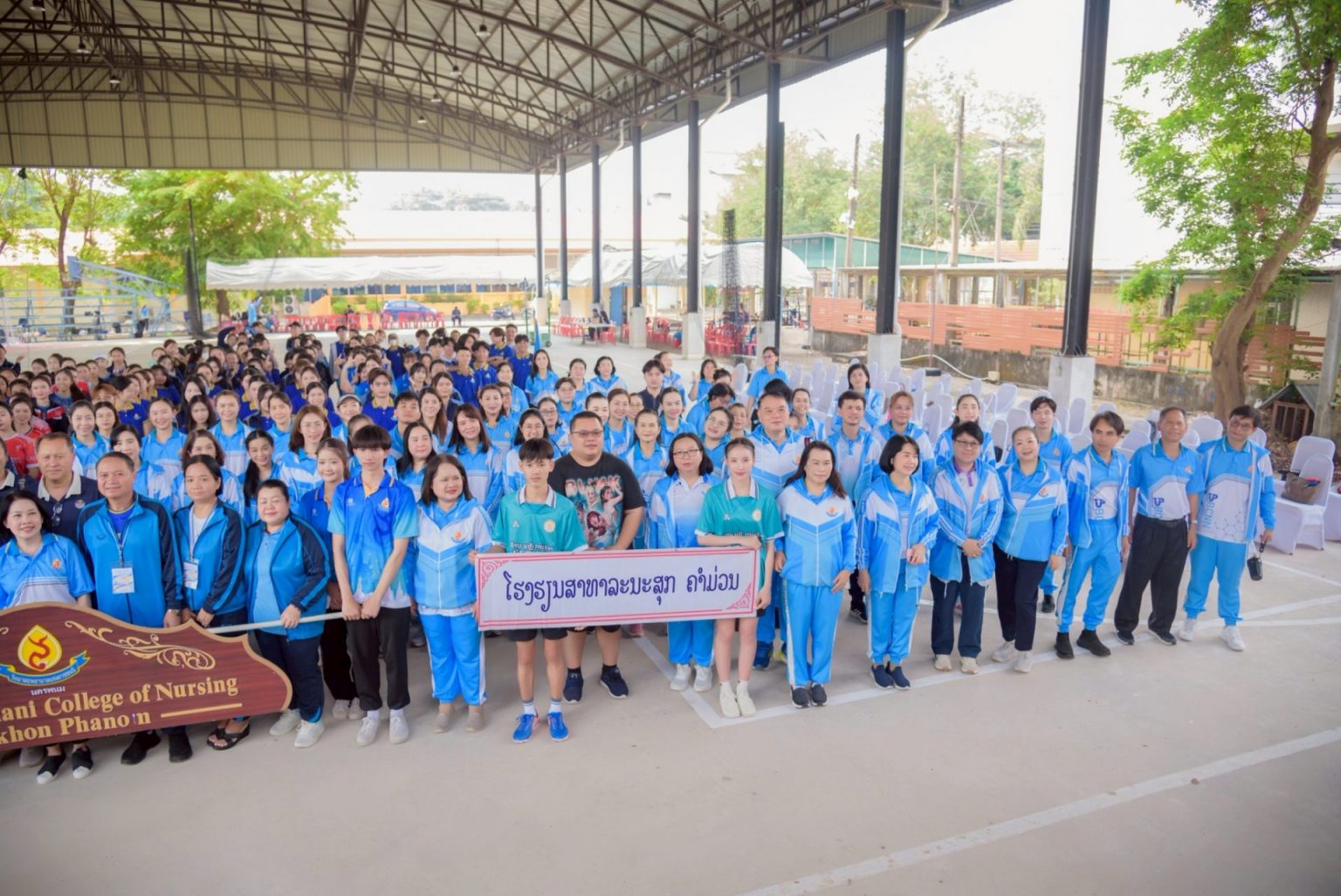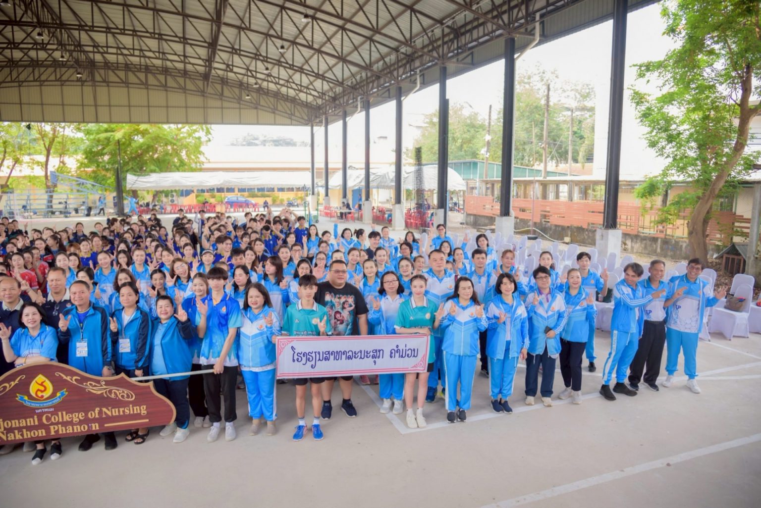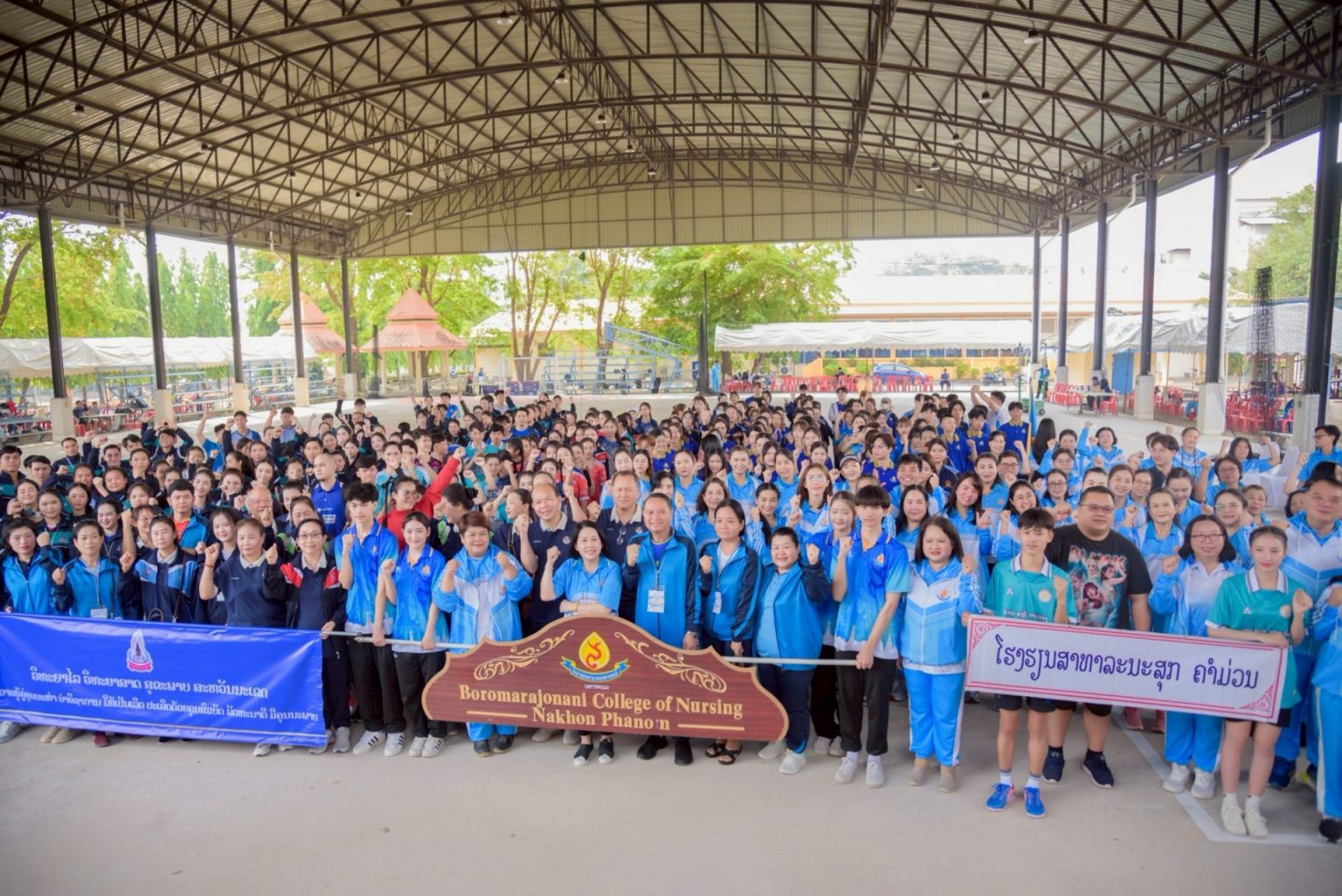 วันที่ 27 มีนาคม 2569 ดร.สุปราณี สิทธิกานต์ คณบดีวิทยาลัยพยาบาลบรมราชชนนีนครพนม เป็นประธานกล่าวเปิดงานและกล่าวต้อนรับผู้เข้าร่วมกิจกรรม โดยมีผู้ช่วยศาสตราจารย์ ดร.สุรชัย เฉนียง รองคณบดีฝ่ายพัฒนานักศึกษาและวิเทศสัมพันธ์ กล่าวรายงานวัตถุประสงค์ของโครงการ โดยมุ่งใช้ “กีฬา” เป็นเครื่องมือในการเสริมสร้างภาวะผู้นำ การทำงานเป็นทีม และความสัมพันธ์ระหว่างประเทศ กิจกรรมดังกล่าวจัดขึ้นภายใต้ความร่วมมือระหว่างวิทยาลัยพยาบาลบรมราชชนนีนครพนม มหาวิทยาลัยนครพนม ร่วมกับวิทยาลัยวิทยาศาสตร์สุขภาพสะหวันนะเขต และโรงเรียนสาธารณสุขคำม่วน สาธารณรัฐประชาธิปไตยประชาชนลาว โดยได้รับเกียรติจาก ดร.สุคันทอน สิงพวงเพ็ด และ ดร.เพ็งคาน บุญวาสนา พร้อมด้วยคณะผู้บริหาร คณาจารย์ และนักศึกษาจากทั้งสองประเทศเข้าร่วม กว่า 400 คน ท่ามกลางบรรยากาศที่เต็มไปด้วยความสนุกสนานและความสามัคคี ณ สนามกีฬา วิทยาลัยพยาบาลบรมราชชนนีนครพนม มหาวิทยาลัยนครพนม