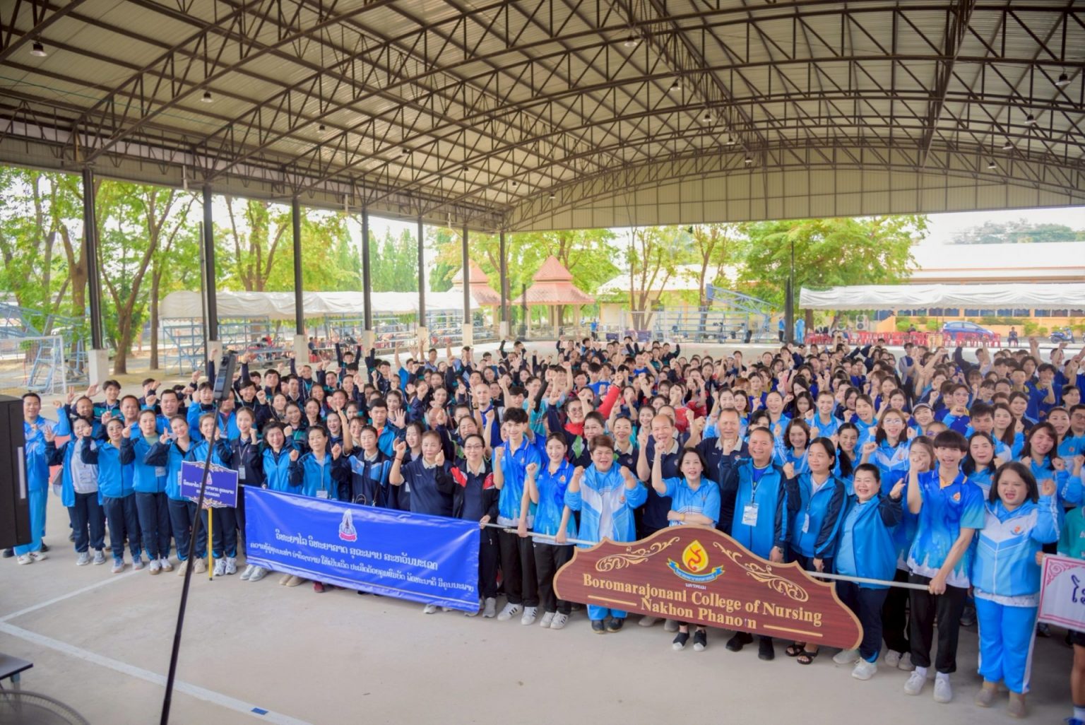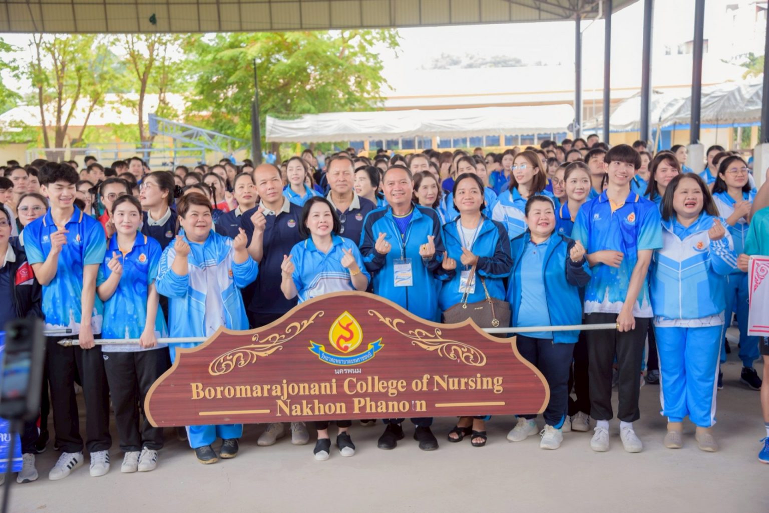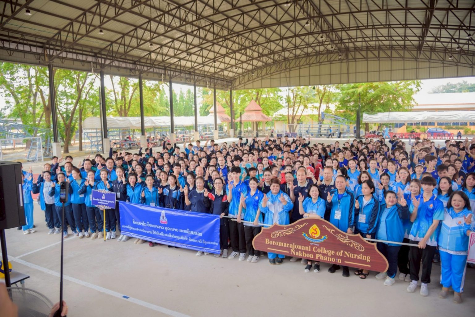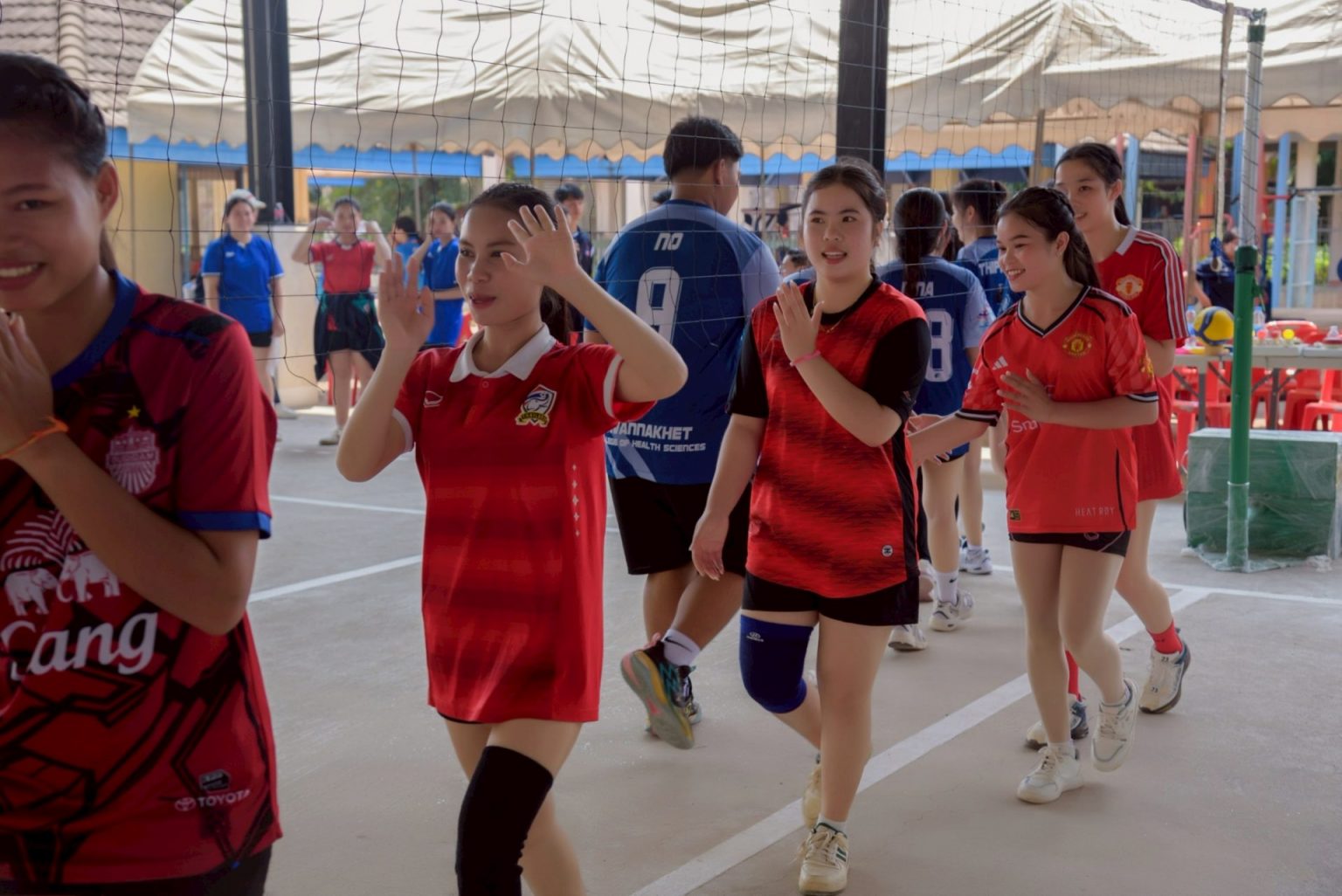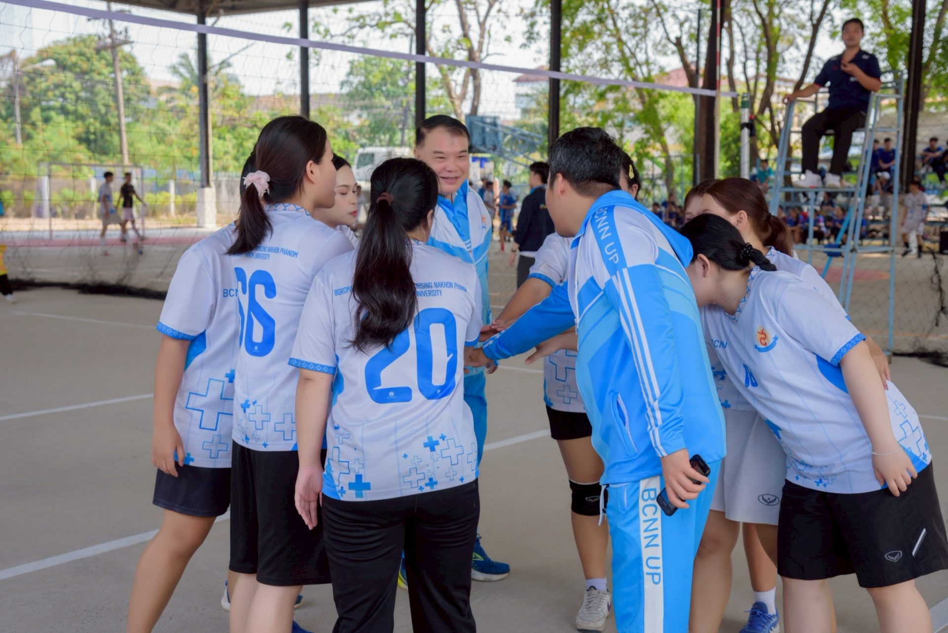 วันที่ 27 มีนาคม 2569 ดร.สุปราณี สิทธิกานต์ คณบดีวิทยาลัยพยาบาลบรมราชชนนีนครพนม เป็นประธานกล่าวเปิดงานและกล่าวต้อนรับผู้เข้าร่วมกิจกรรม โดยมีผู้ช่วยศาสตราจารย์ ดร.สุรชัย เฉนียง รองคณบดีฝ่ายพัฒนานักศึกษาและวิเทศสัมพันธ์ กล่าวรายงานวัตถุประสงค์ของโครงการ โดยมุ่งใช้ “กีฬา” เป็นเครื่องมือในการเสริมสร้างภาวะผู้นำ การทำงานเป็นทีม และความสัมพันธ์ระหว่างประเทศ กิจกรรมดังกล่าวจัดขึ้นภายใต้ความร่วมมือระหว่างวิทยาลัยพยาบาลบรมราชชนนีนครพนม มหาวิทยาลัยนครพนม ร่วมกับวิทยาลัยวิทยาศาสตร์สุขภาพสะหวันนะเขต และโรงเรียนสาธารณสุขคำม่วน สาธารณรัฐประชาธิปไตยประชาชนลาว โดยได้รับเกียรติจาก ดร.สุคันทอน สิงพวงเพ็ด และ ดร.เพ็งคาน บุญวาสนา พร้อมด้วยคณะผู้บริหาร คณาจารย์ และนักศึกษาจากทั้งสองประเทศเข้าร่วม กว่า 400 คน ท่ามกลางบรรยากาศที่เต็มไปด้วยความสนุกสนานและความสามัคคี ณ สนามกีฬา วิทยาลัยพยาบาลบรมราชชนนีนครพนม มหาวิทยาลัยนครพนม