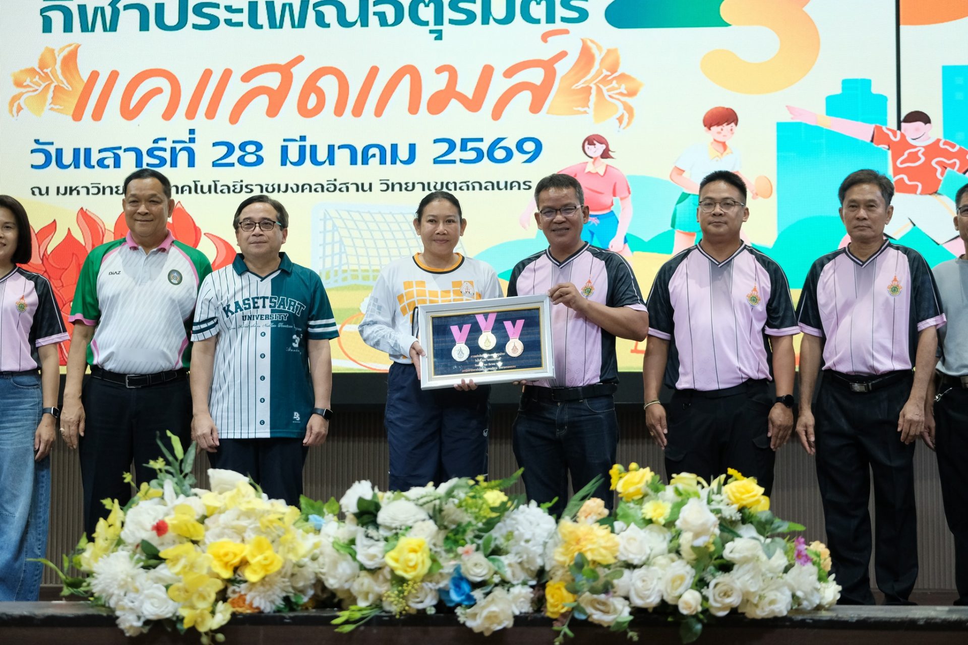 วันที่ 28 มีนาคม 2569 วิทยาลัยพยาบาลบรมราชชนนีนครพนม มหาวิทยาลัยนครพนม นำโดย ดร.สุปราณี สิทธิกานต์ คณบดีวิทยาลัยพยาบาลบรมราชชนนีนครพนม มหาวิทยาลัยนครพนม มอบหมายให้ ผศ.พิพัฒน์พงศ์ เข็มปัญญา ผู้ช่วยคณบดีฝ่ายบัณฑิตศึกษา วิจัยและนวัตกรรม นำทัพนักกีฬาวิทยาลัยพยาบาลบรมราชชนนีนครพนม เข้าร่วมการแข่งขันกีฬาประเพณีจตุรมิตร ครั้งที่ 23 “แคแสดเกมส์” ณ มหาวิทยาลัยเทคโนโลยีราชมงคลอีสาน วิทยาเขตสกลนคร ท่ามกลางบรรยากาศแห่งความคึกคักและมิตรภาพของเครือข่ายสถาบันอุดมศึกษาในภูมิภาค โดยมีผู้ช่วยศาสตราจารย์ ดร.พรหมภัสสร ชุณหบุญญทิพย์ ผู้ช่วยอธิการบดีฝ่ายกิจการนักศึกษาและศิลปวัฒนธรรม พร้อมด้วย นางพสณชนก ไตรสิริโชค ผู้อำนวยการกองบริหารงานทั่วไป รักษาการ ผู้อำนวยการสำนักงานอธิการบดี นายวันเฉลิม อุปราคม รักษาการผู้อำนวยการกองพัฒนานักศึกษา นำคณะนักกีฬานักศึกษาและบุคลากรของมหาวิทยาลัยนครพนม เข้าร่วม