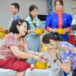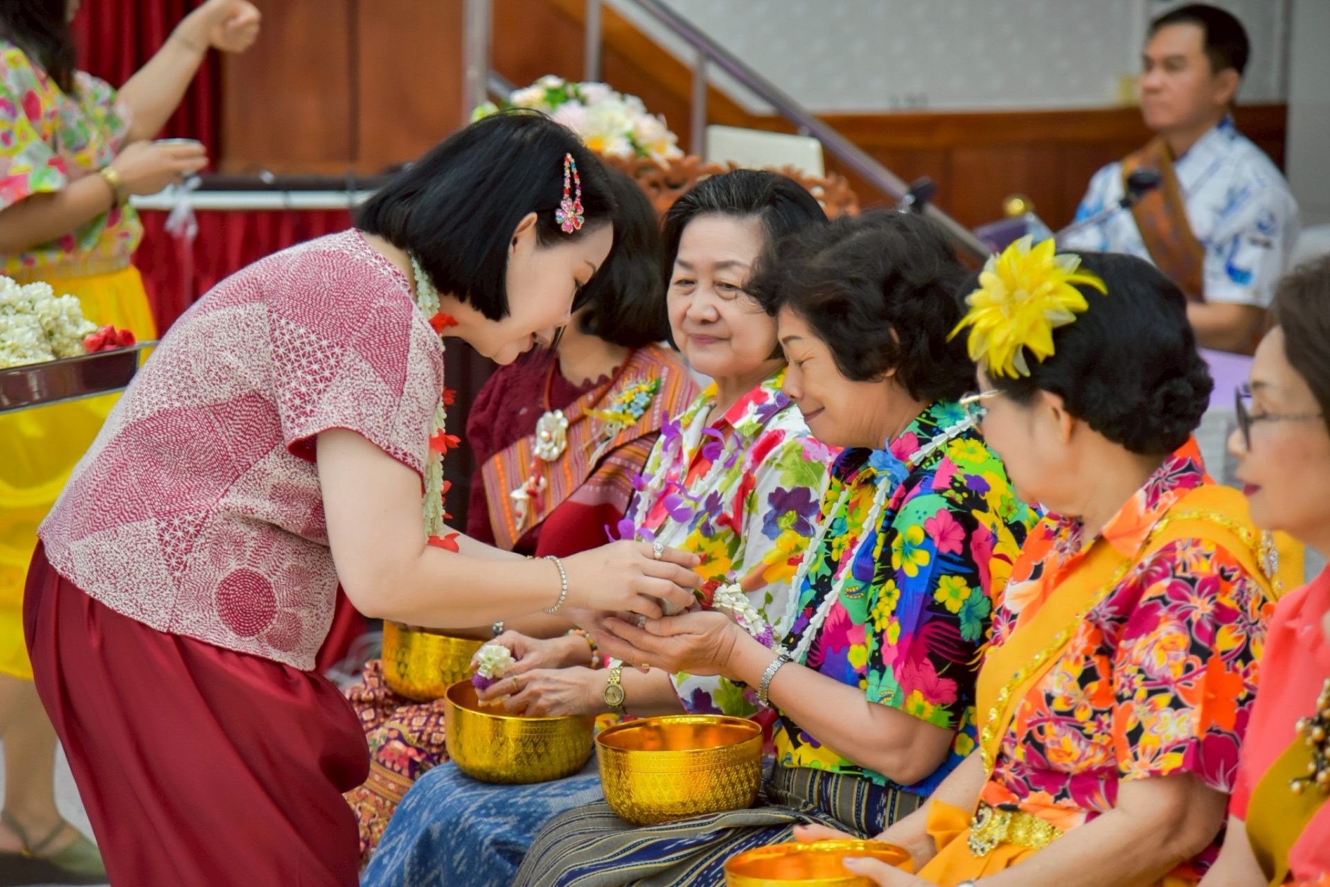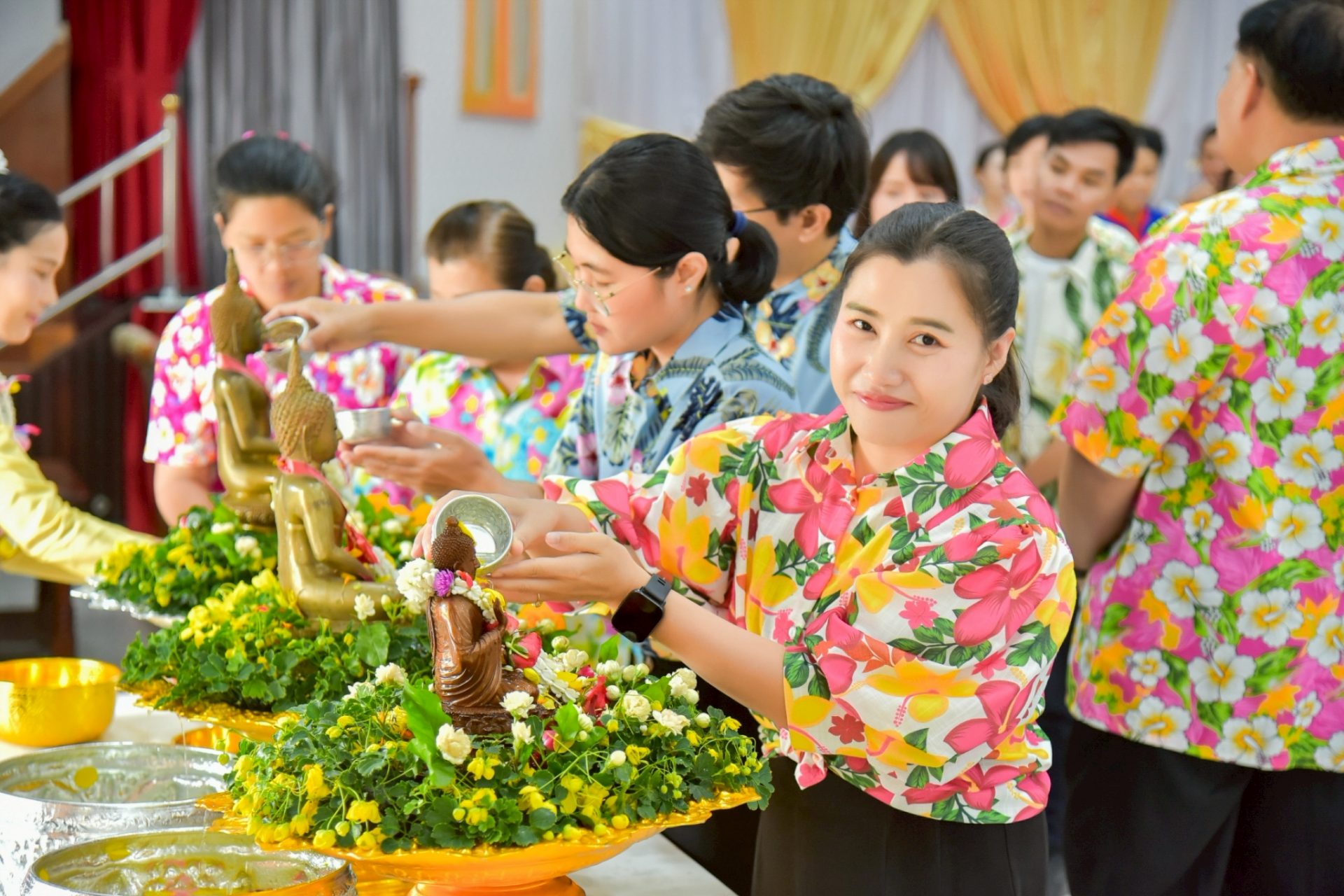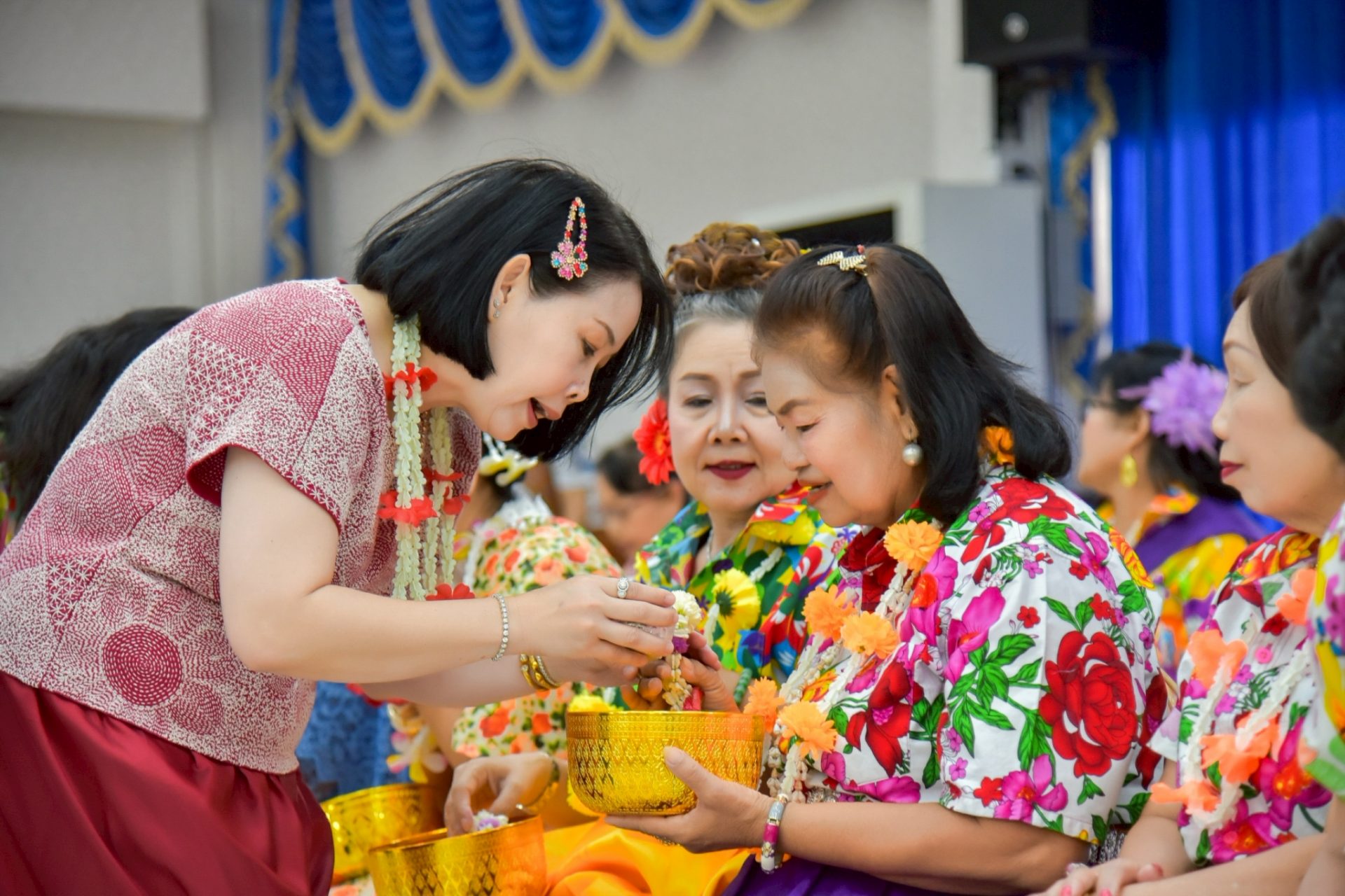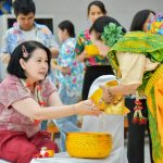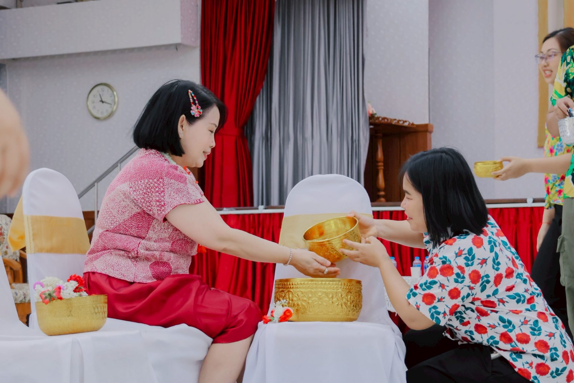 ภายในงานจัดให้มีกิจกรรมรดน้ำดำหัวผู้สูงอายุจากชุมชนในเขตเทศบาลเมืองนครพนม ชมรมกันเกราสร้างสุข และภาคีเครือข่ายที่เข้าร่วมอย่างอบอุ่น พร้อมทั้งกิจกรรม “ฮักแพงแบ่งปัน” ผ่านซุ้มอาหารที่ทุกภาคส่วนร่วมกันจัดขึ้น สะท้อนถึงพลังของการให้และการแบ่งปันที่เชื่อมโยงคนในชุมชนเข้าด้วยกัน บรรยากาศเต็มไปด้วยความอบอุ่น สนุกสนาน และเปี่ยมด้วยคุณค่าทางวัฒนธรรม สะท้อนเสน่ห์ของประเพณีสงกรานต์ในฐานะมรดกทางวัฒนธรรมไทยที่หล่อหลอมความสัมพันธ์ของคนทุกช่วงวัย อีกทั้งยังเป็นพื้นที่แห่งการเรียนรู้ที่ช่วยปลูกฝังให้นักศึกษาเห็นความสำคัญของการดูแลผู้สูงอายุ อันจะนำไปสู่การยกระดับคุณภาพชีวิตของประชาชนและสังคมอย่างยั่งยืนต่อไป
