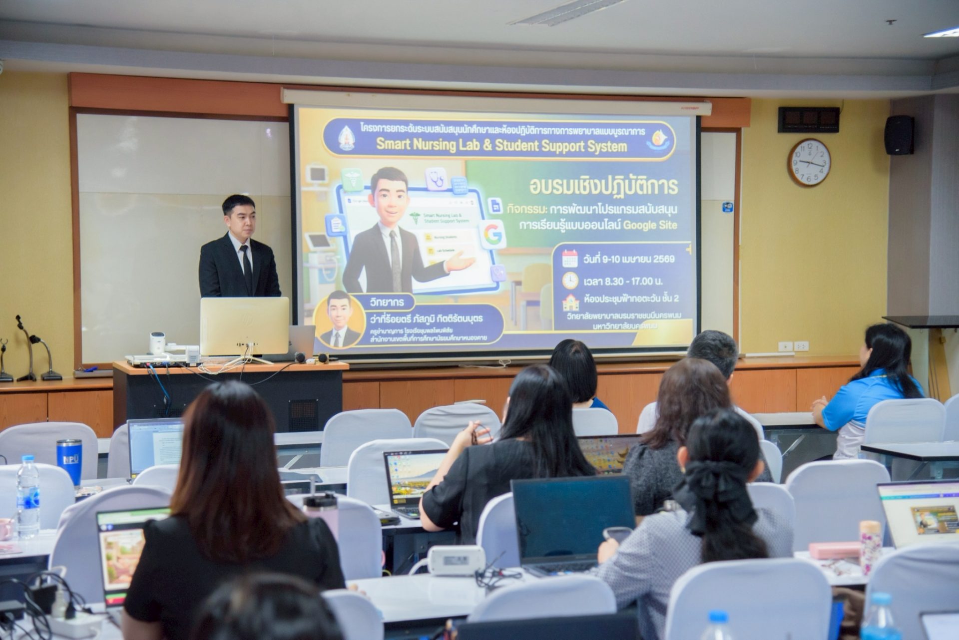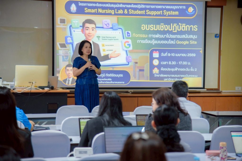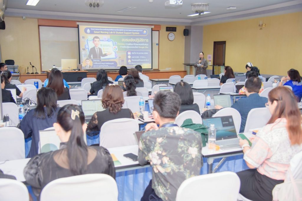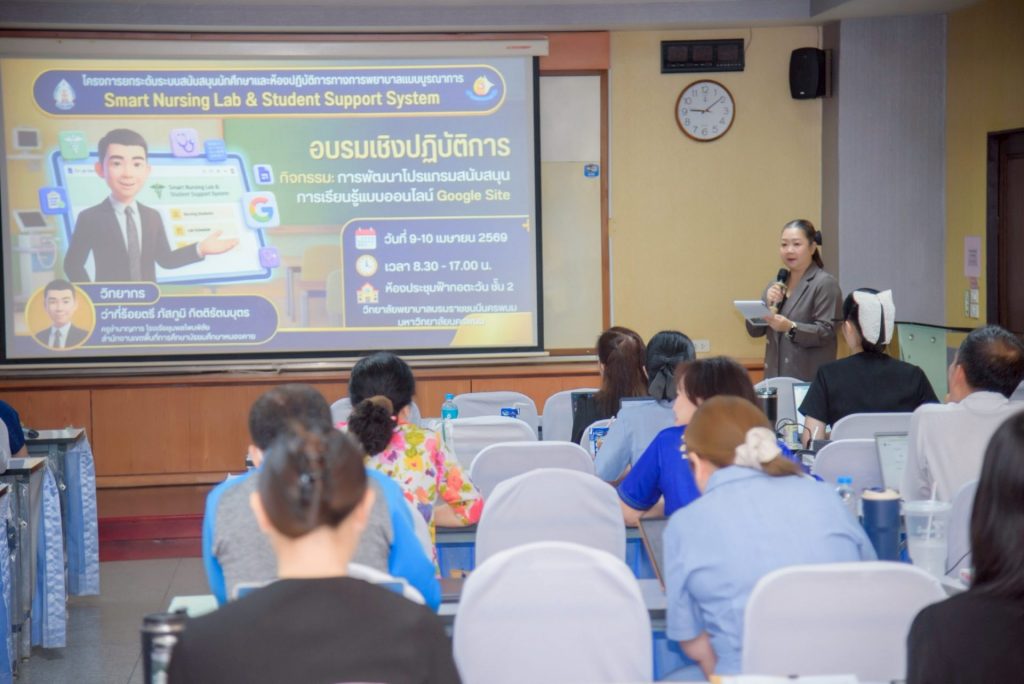 โดยกิจกรรมในครั้งนี้มุ่งเน้นความสำคัญของการพัฒนาระบบสนับสนุนการเรียนรู้ในยุคดิจิทัล ซึ่งเป็นกลไกสำคัญในการยกระดับคุณภาพการจัดการศึกษา และเสริมสร้างศักยภาพนักศึกษาให้สามารถเรียนรู้ได้อย่างมีประสิทธิภาพ สอดคล้องกับการเปลี่ยนแปลงของเทคโนโลยีและการศึกษาสมัยใหม่ โดยมุ่งเน้นการพัฒนาองค์ความรู้และทักษะด้านการสร้างสื่อและแพลตฟอร์มการเรียนรู้ออนไลน์ ผ่านหัวข้อสำคัญ ได้แก่ การพัฒนาโปรแกรมสนับสนุนการเรียนรู้ด้วย Google Site การใช้เทคโนโลยีเพื่อพัฒนาสื่อสนับสนุนการเรียนรู้ และการจัดกิจกรรม Workshop แบ่งกลุ่ม 5 กลุ่มวิชาทางการพยาบาล เพื่อให้คณาจารย์สามารถนำความรู้ไปประยุกต์ใช้ได้จริง ทั้งนี้ได้รับเกียรติจาก ว่าที่ ร.ต.ภัสภูมิ กิตติรัตนบุตร ครูชำนาญการ โรงเรียนชุมพลโพนพิสัย จังหวัดหนองคาย เป็นวิทยากรผู้เชี่ยวชาญมาถ่ายทอดความรู้และประสบการณ์ ตลอดจนเปิดโอกาสให้คณาจารย์และบุคลากรได้ร่วมแลกเปลี่ยนเรียนรู้ ฝึกปฏิบัติ และพัฒนาศักยภาพด้านนวัตกรรมการเรียนการสอนอย่างเป็นรูปธรรม